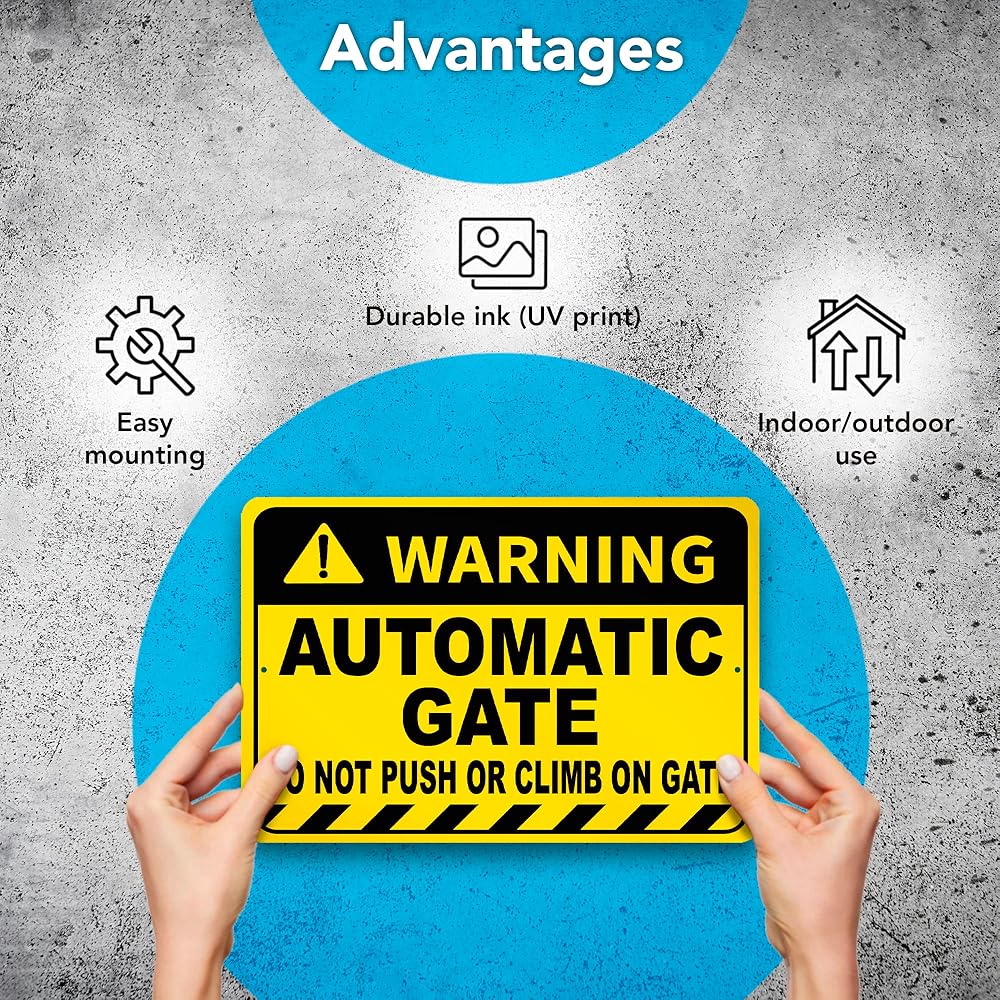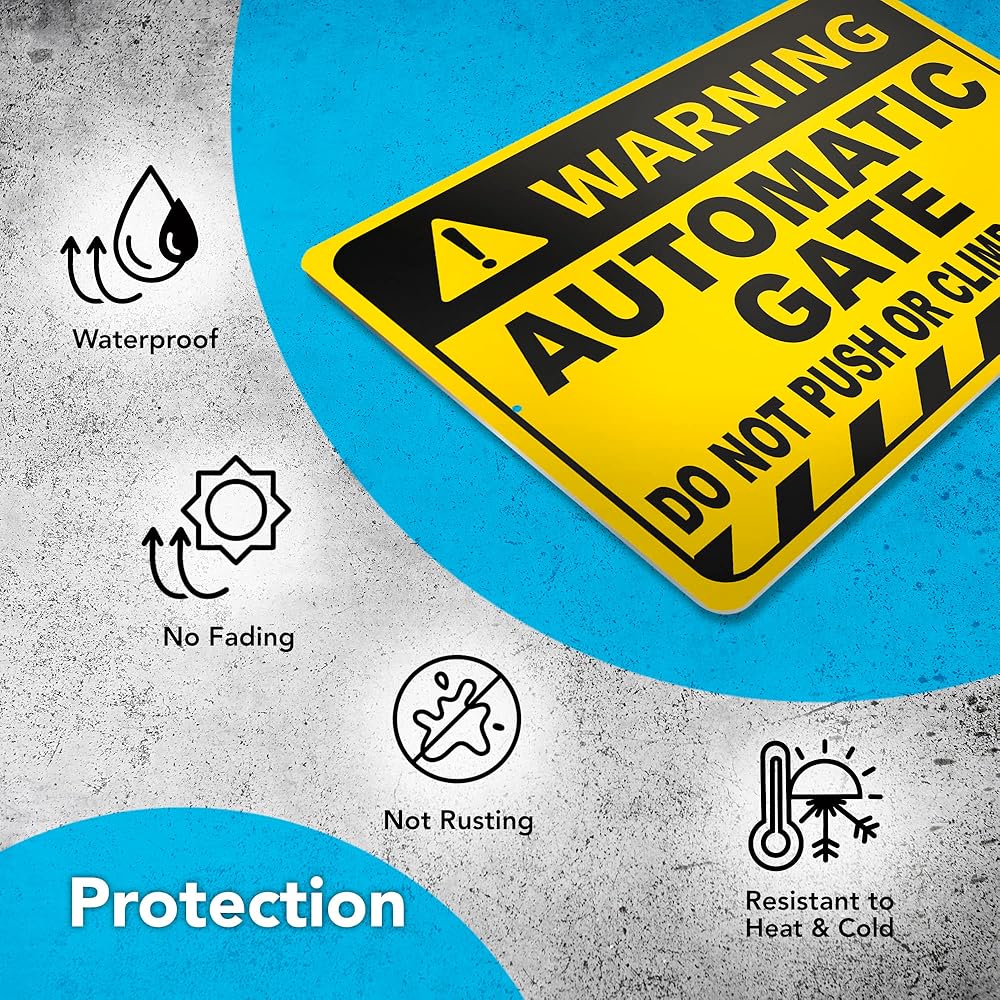 Automatic gate signs graphics and paint will withstand the outdoor elements and will not fade. Ideal for home & office use.