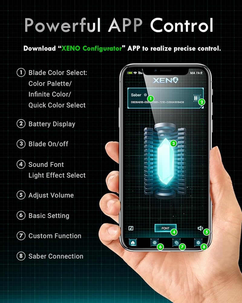 APP Control Upgrade: You can customize light patterns, sounds, blade behavior, sensitivity, and motion control via the dedicated app. This light saber Featurs 16 preset sound fonts, a color wheel with multiple changing modes (including rainbow blade effects), 3 dynamic light modes, and 3 adjustable volume levels