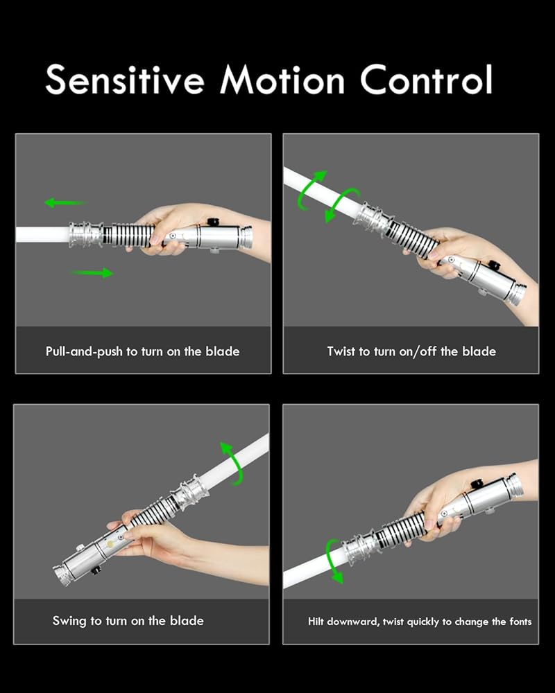 Sensitive Motion Control: Equipped with the upgraded XRGB 3.0 motion sensor, the saber responds more accurately to your movements.You can turn on/off the blade, change the fonts/BGM/turn on/off the blade by twist, stab, swing, push-and-pull. Other features include high-bass swing hum, impact, blaster mode, melt, tip drag, lockup, sleep mode, and more
