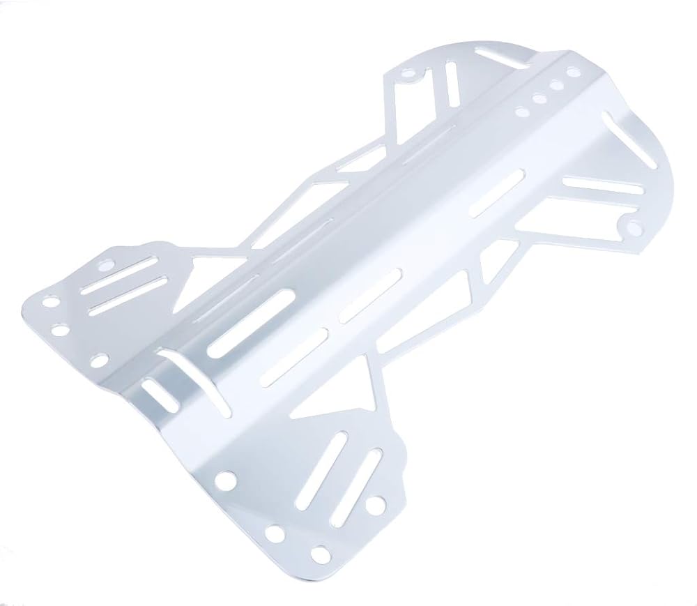 Description: - Universal diving back plate that can be used for single tank or twin tank buoyancy devices, best fit to any bladder. - Light weight aluminum and anodized white, constructed with multiples holes including the harness slots and crotch straps hole. - Slots to accept directly threaded cam belt bands, crotch straps, universal fits 1 inch and 2 inch standard webbing. - This backplate is made of aluminum, which ensures maximum resistance against salt-water environments, and durability. - Backplate with slick appearance is very light-weight, therefore making it the perfect component for building your BCD with. Specification: - Material: Aluminum - Size: Approx.39.7x26cm15.62x10.24inch Package Includes: 1 Piece Diving Backplate Note: Color might be slightly different due to the color calibration of each individual monitor. Please allow slightly measuring deviation due to manual measurement.