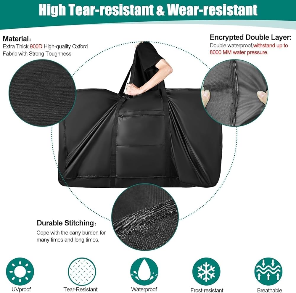 Upgraded Material: This bike transport bag is crafted from high-strength 900D Oxford fabric, offering water resistance and heavy-duty performance. It can effectively help you resist ultraviolet rays, is waterproof, windproof, dustproof, and inclement weather.