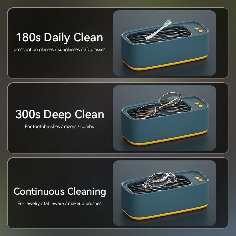 【PROFESSIONAL ULTRASONIC CLEANER】Effortless one-touch operation delivers powerful, deep cleaning for sparkling results—ideal for jewelry, eyeglasses, rings, watch bands, dentures, and daily upkeep. Save time and money by cleaning professionally at home.