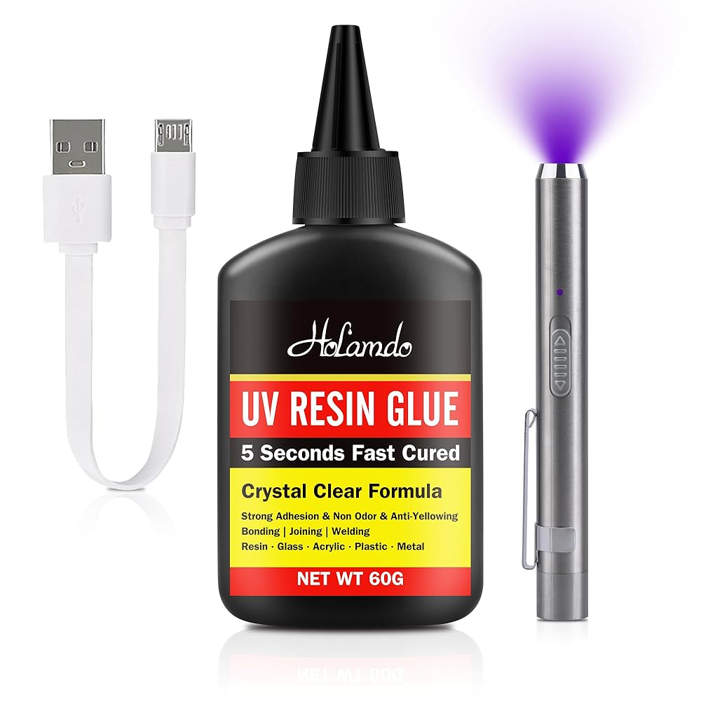 Multi-Surface Versatility for All Craft & Repair: ProjectsThis UV resin kit works on plastic/metal/glass/ceramic/wood/beads—ideal for beginners/pros. Replaces super glue/epoxy/solder and is odor-free, making it safe for all crafting scenarios. Perfect for figurine repair, bead jewelry sealing, plastic welding, glass ornament fixes, and DIY resin art.