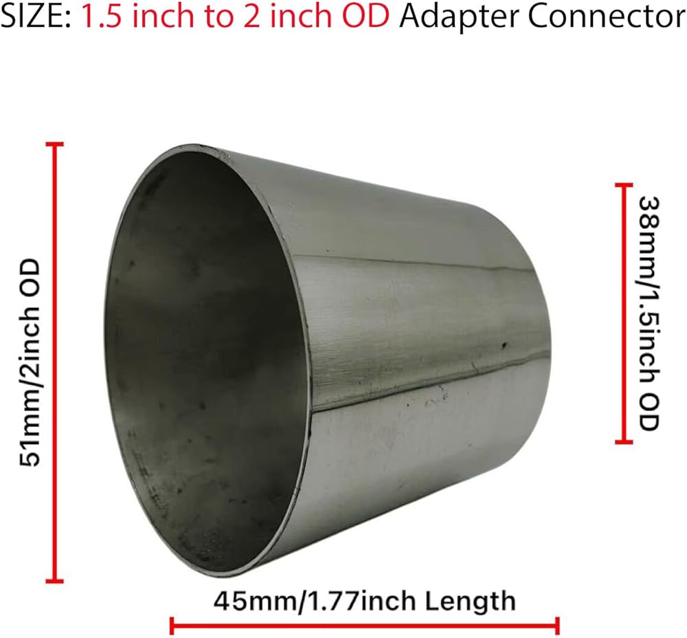 Chrome Silver SS304 Stainless Steel Adapter Connector Mandrel Exhaust Bend Elbow Pipe Concentric Reducer for Car Industrial Piping 2pcs (1.5 inch to 2 inch OD)
