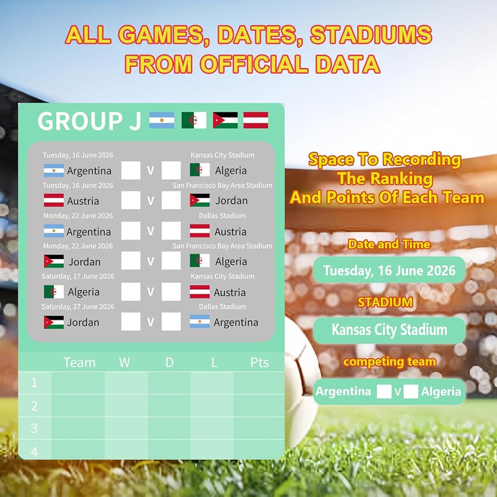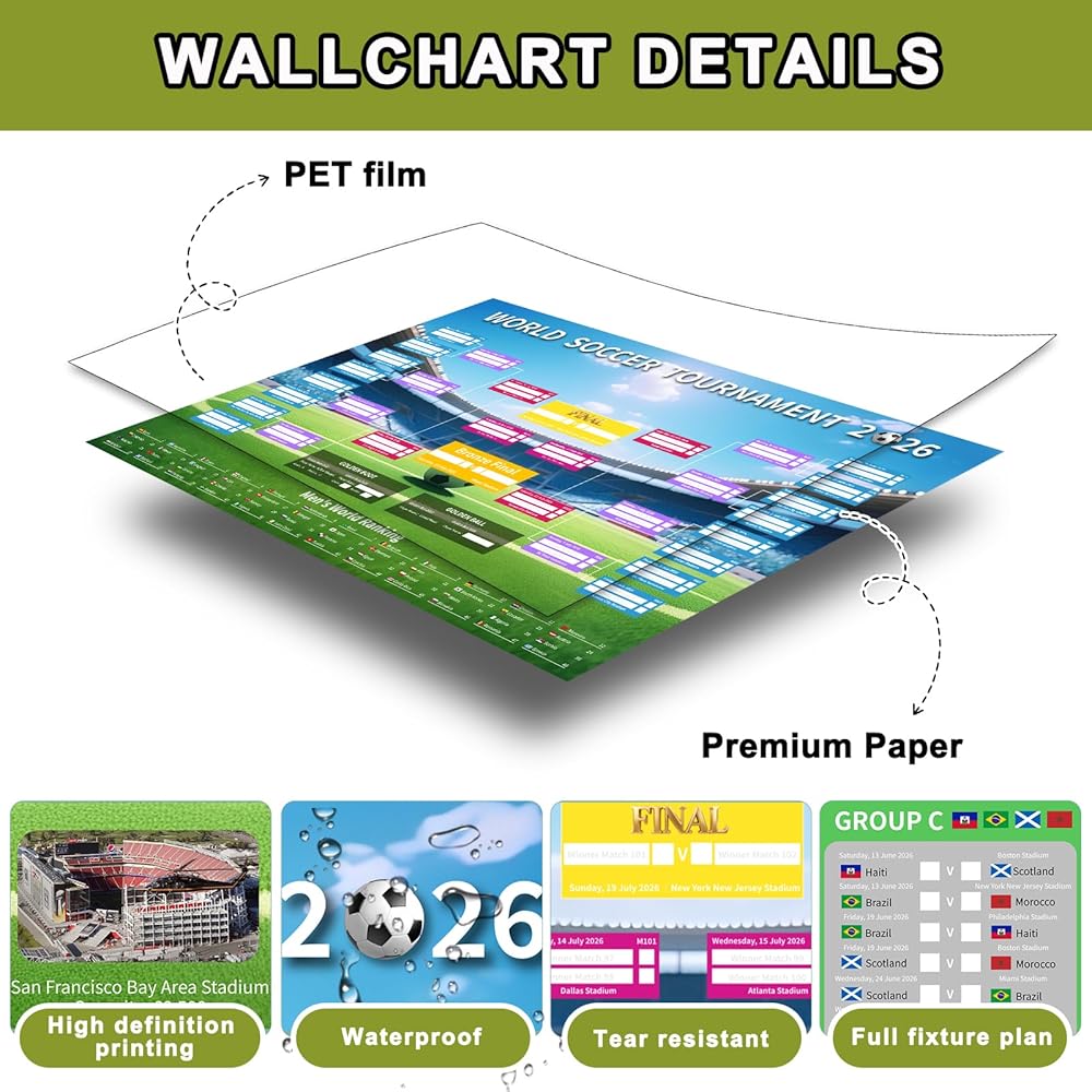World Cup Soccer 2026: Our Soccer World Cup schedule poster is the perfect choice for you and your friends or family to track the matches. It's simple, easy to understand, and easy to follow. You can record the results together on the poster, which is a lot of fun. This poster also makes a great decoration for a soccer party.