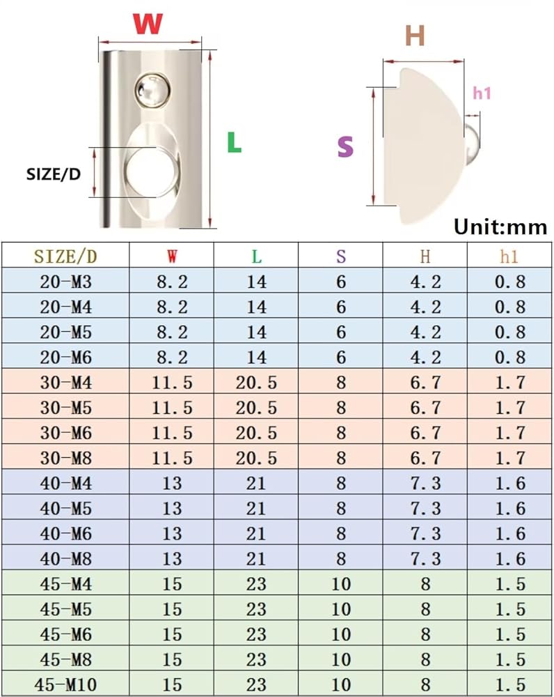 For T-slot aluminium profile 20 30 40 45 series. Made of carbon steel with high hardness and nickel plated surface Well processed, smooth surface Various specifications are available to meet the needs of different scenarios. Please pay attention to the required size when purchasing