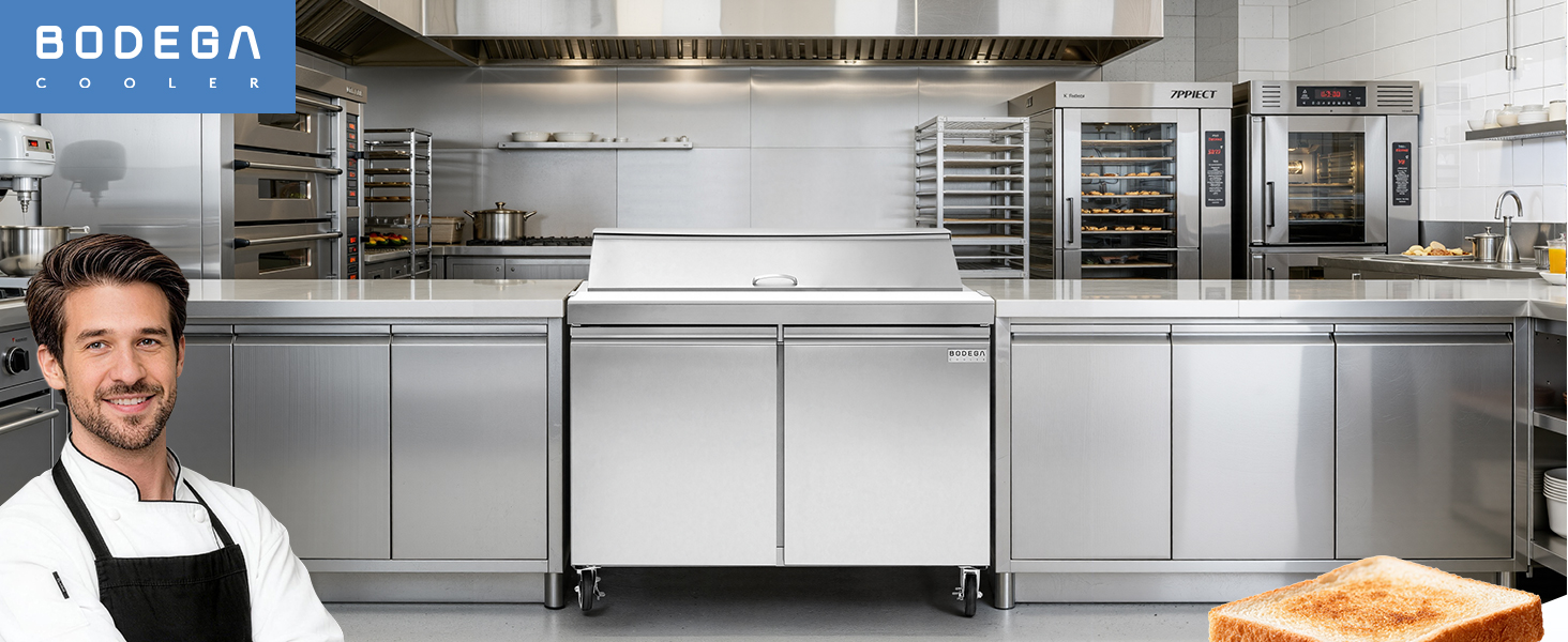 🍔Certification & Support🍔BODEGACOOLER 's products has ETL and NSF certified. When the food prep refrigerator arrived,you will also get GN 1/6 pan *8,Shelf *1, K-Clip *4, Bar *3, Cutting Board *1.And the commercial salad bar table covered with a protective film to ensure no scratches.Includes a 12-month warranty and dedicated US support, providing a dependable solution for your business