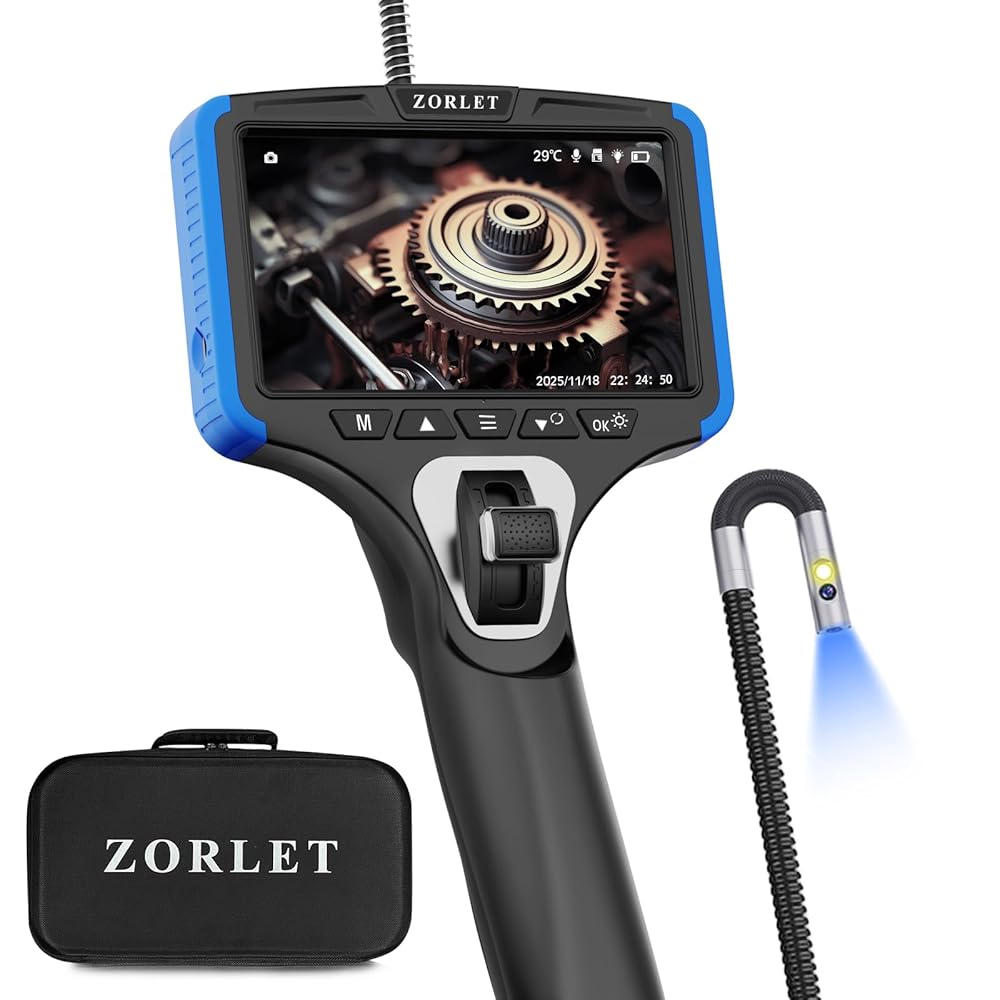 Dual Lens Two-Way Articulating Borescope Camera with Light, 5" Inspection Camera Endoscope, 0.25in Slim Probe, Waterproof 5.0FT Snake Camera for Automotive, Mechanics & Engine Inspection