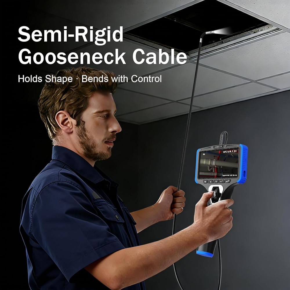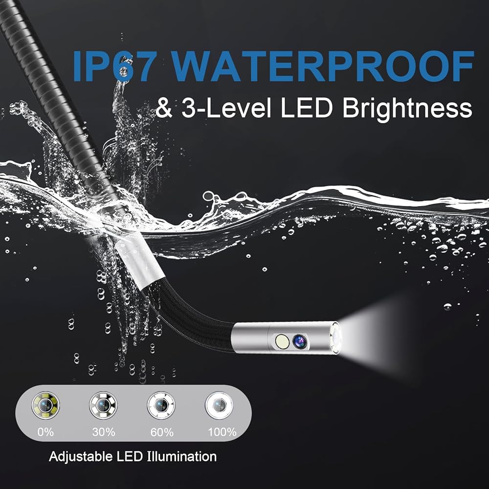 【Two-Way Articulating Control for Targeted Inspections】- The probe smoothly articulates left and right, allowing precise viewing control in confined or angled spaces. Designed for focused inspections inside engines, pipes, mechanical assemblies, and wall cavities, it helps you locate issues without unnecessary disassembly—saving time and improving diagnostic efficiency.