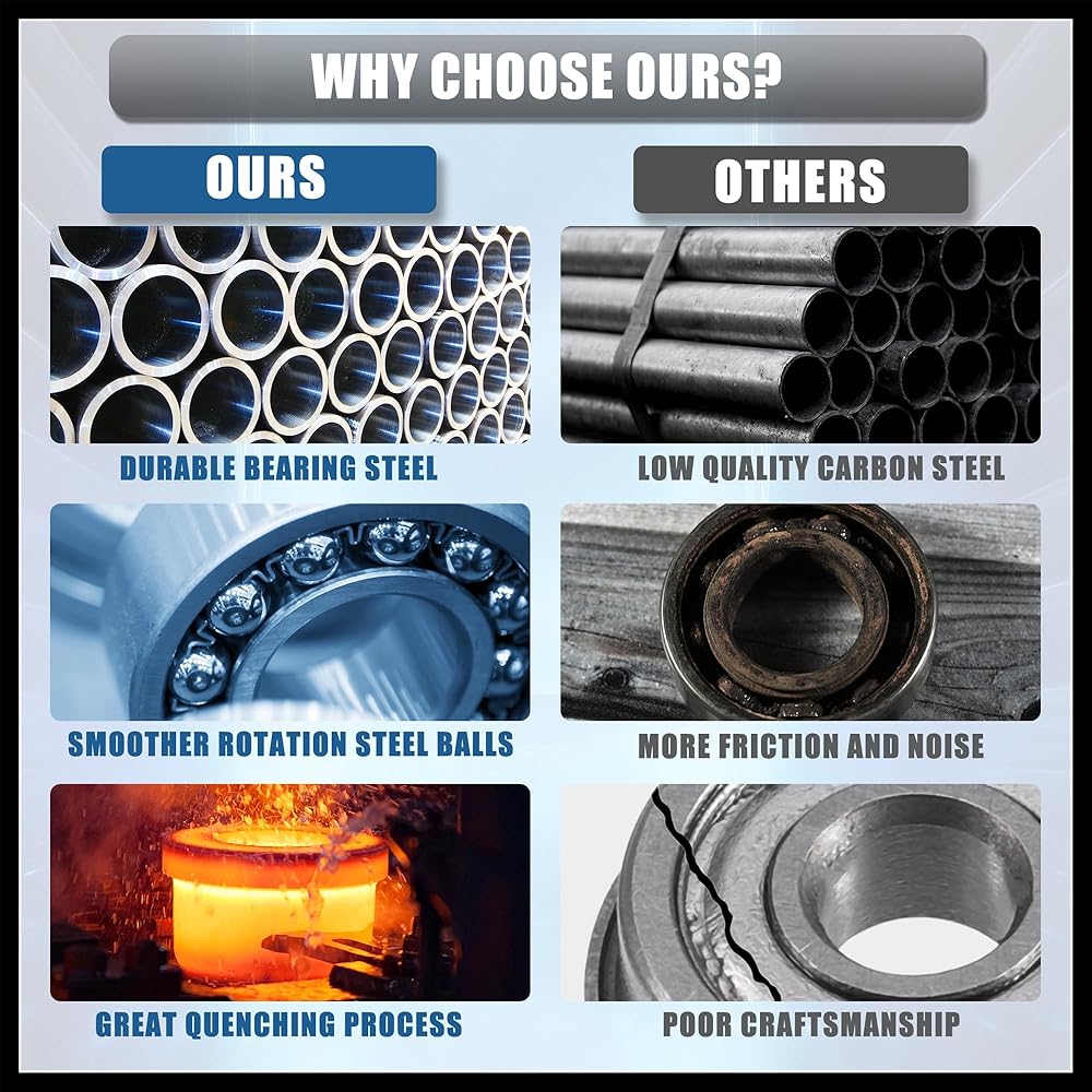 Convenient: Easy Installation - Our ball bearing provide stable performance with quenching process, just press these low friction bearing evenly to prevent the bearing from tilting or skewing. They support both radial and axially loads under high speed.