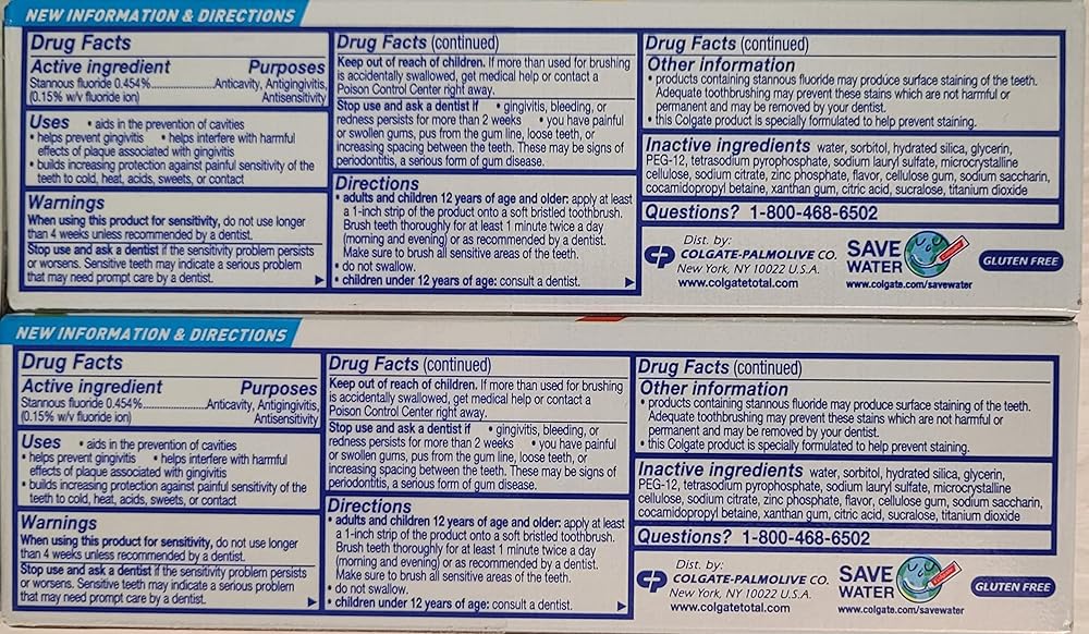 Colgate Total SF Clean Mint Toothpaste has a breakthrough formula that fights bacteria on teeth, tongue, cheeks and gums for Whole Mouth Health. Colgate Total with stannous fluoride also offers more benefits than ever including sensitivity relief, improved enamel strength and odor neutralization (based on in vitro studies)