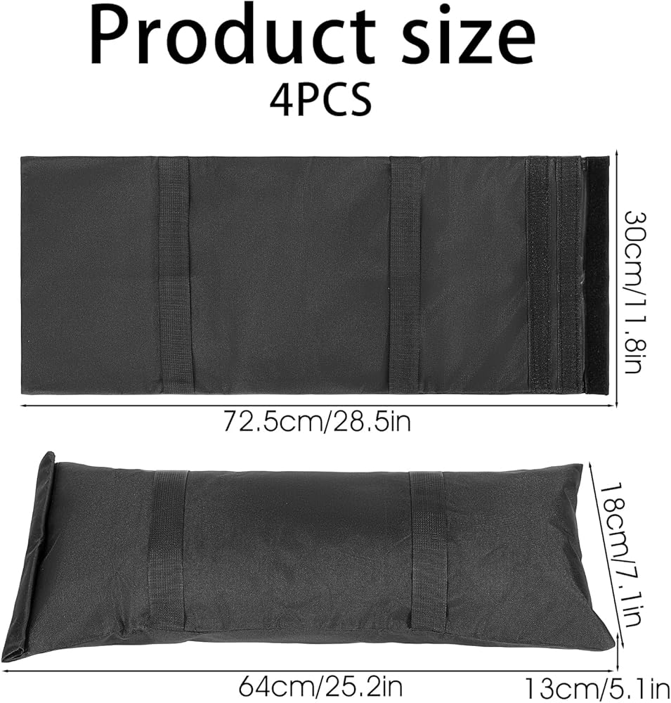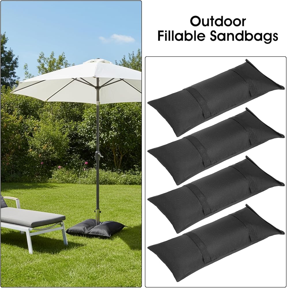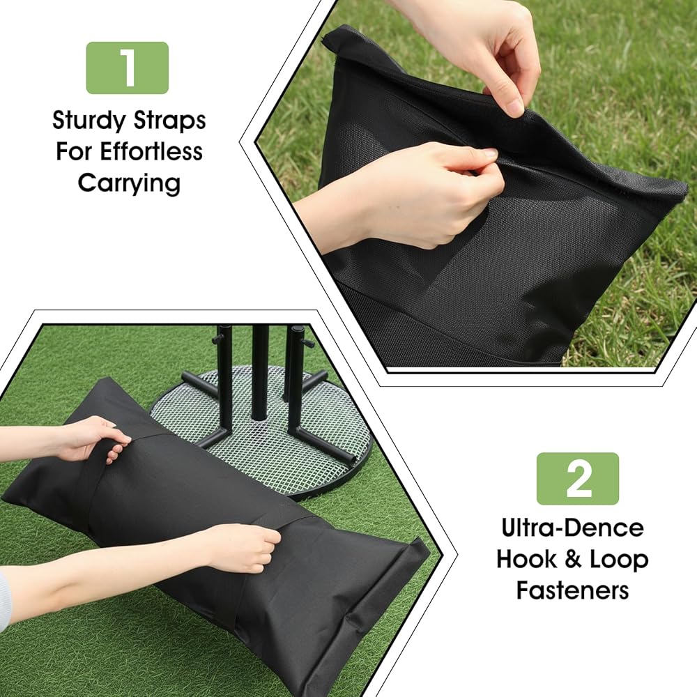 【High Weight Capacity】Each of these outdoor fillable sand bags for weight can hold up to 50 lbs, offering a substantial 200 lbs total weight capacity when a set. This heavy-duty support is essential for securing various outdoor equipment like patio umbrellas, trampolines, and canopy tents against wind. Users can adjust the stability by choosing different fillers such as sand, gravel, or dirt, allowing for customizable counterweight based on specific needs. The empty bag design requires p