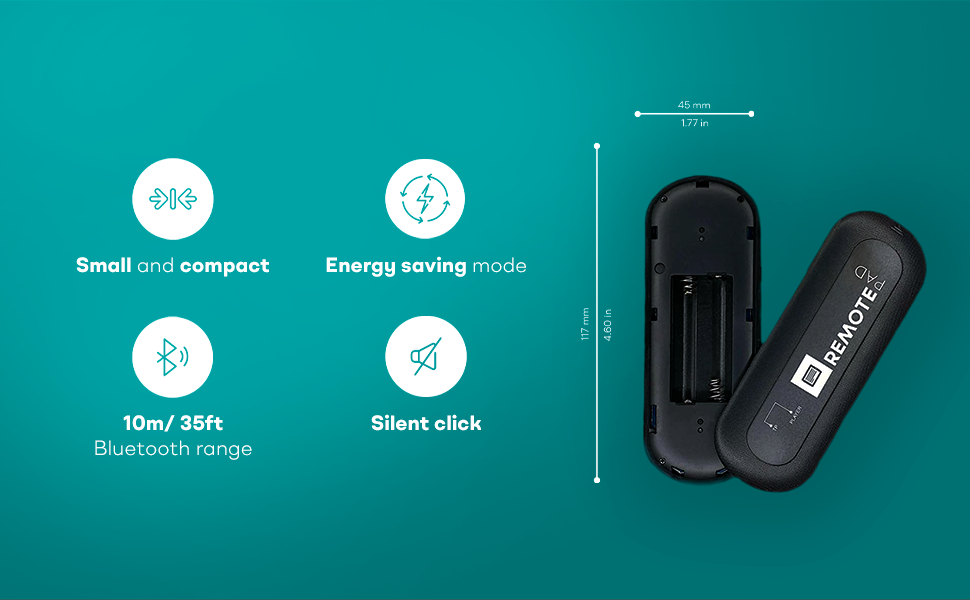 Silent & Discreet: Buttons operate silently to prevent audio issues. Exclusive black model for an elegant, minimalistic look that won't stand out in videos. Turn your teleprompter kit into a wireless teleprompter with this remote control and prompter APP bundle.