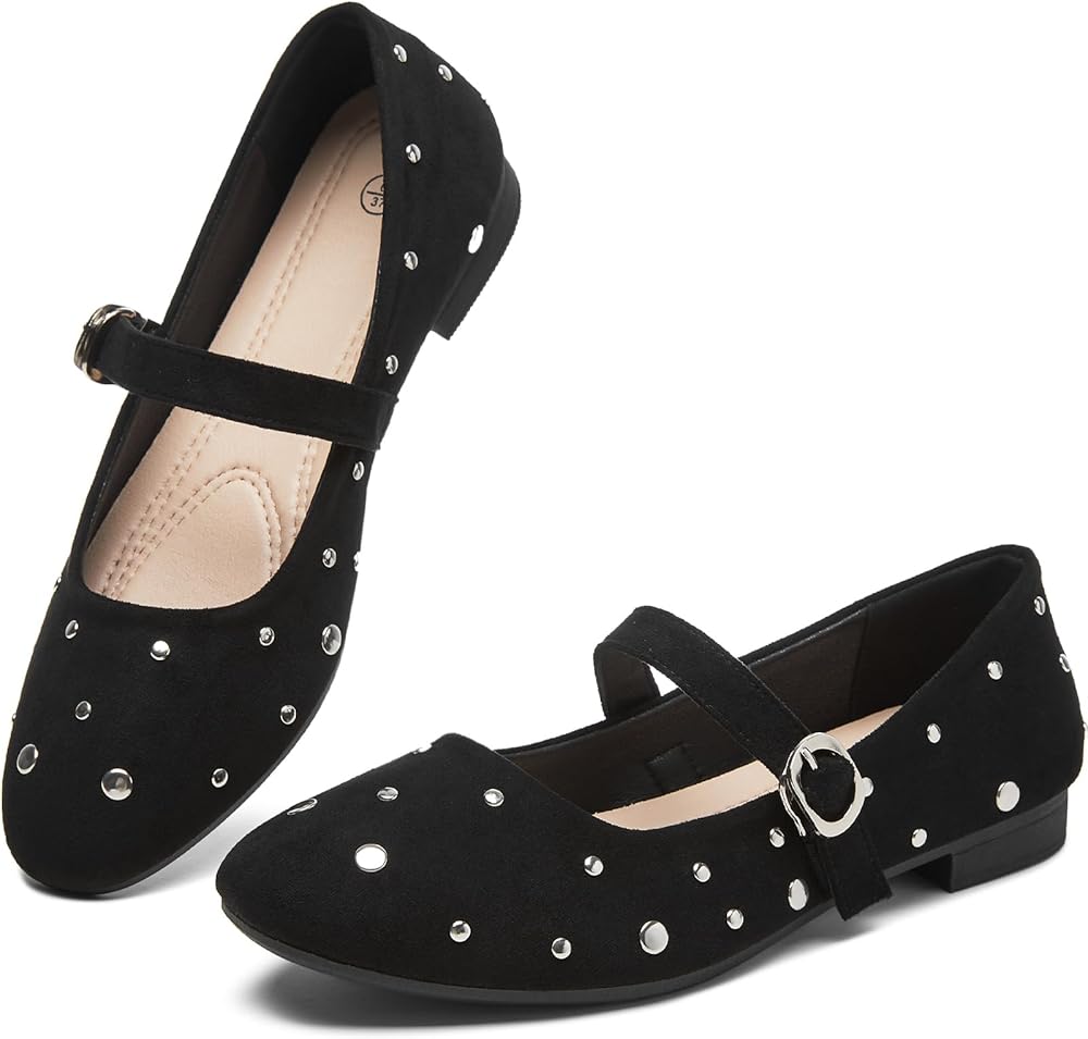 Portable & Easy to Wear Design: Slip into these studded Mary Jane flats for women effortlessly and take them anywhere. A must-have accessory for busy women seeking comfort and convenience in women's shoes.