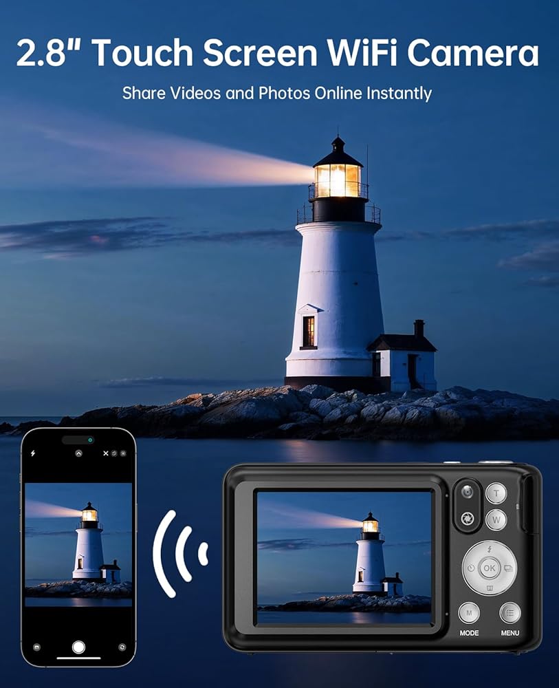 【WIFI Function & 2.8" IPS Touch Screen】--- Our cameras for photography is equipped with built-in Wi-Fi functionality, allowing you to easily connect to your smartphone and share videos and images to your social platforms anytime, anywhere. It also features a 2.8-inch IPS touch screen, making it easier to operate the digital camera and simply touch to set up and view functions.