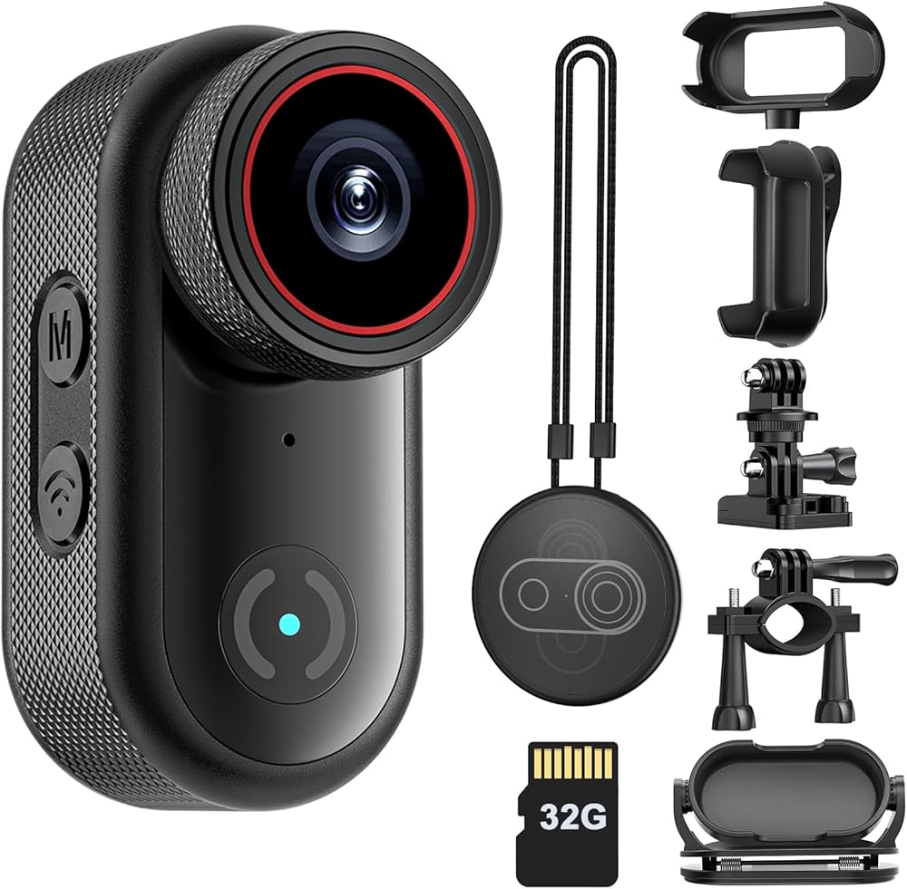 4K Thumb Action Camera,POV Cameras Wearable Small Body Camera,Portable Vlogging Hands-Free POV Recording Sport Action Video Cam, Helmet Cam for Pet Walking,Cycling, Motorcycle(32GB,Black)
