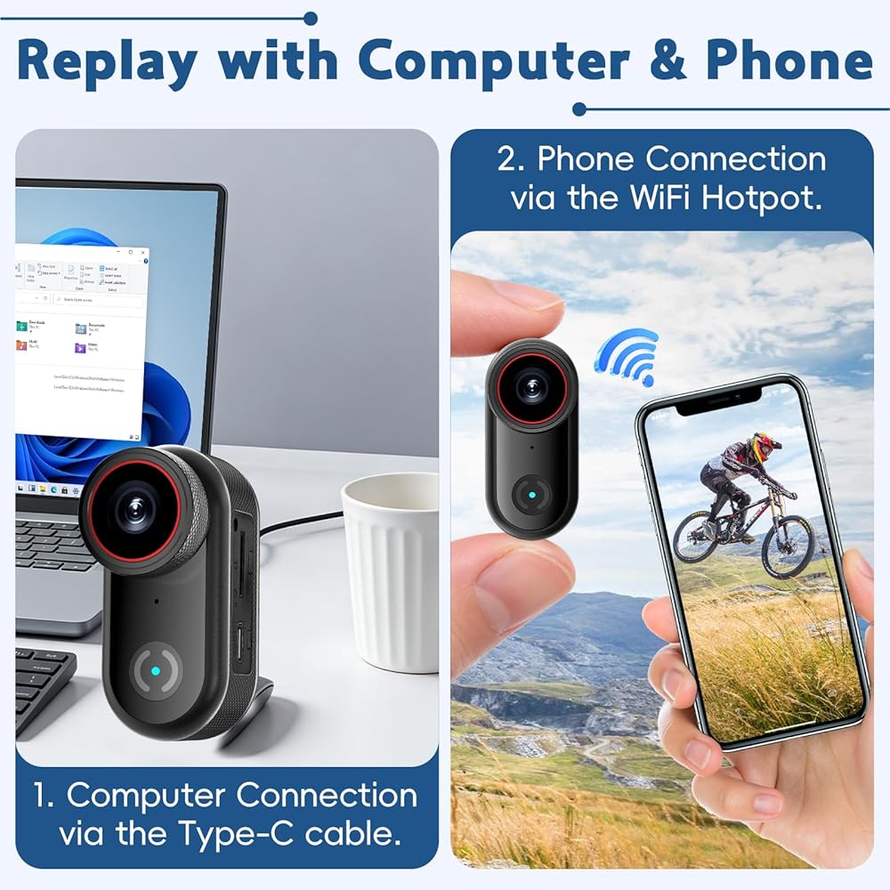 Long Battery Life: This bodycam supports recording while charging, significantly extending shooting time. The thumb-sized camera can continuously record for up to 100 minutes in 4K at 30fps. With one‑click recording, you can instantly capture memorable moments.