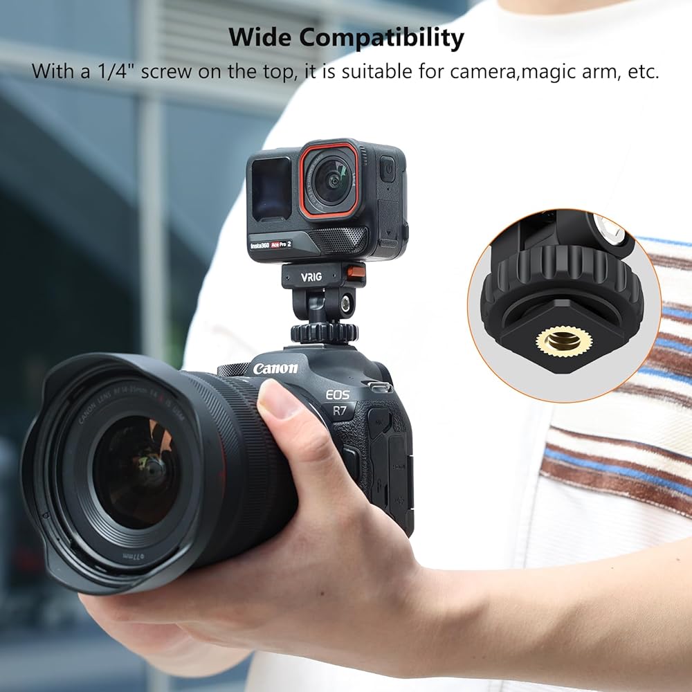 VRIG Cold Shoe Adapter Mount with Magnetic Quick Mount, 180 Tilt Adjustable, Universal Camera Accessory for Insta360 Ace Pro2/Ace Pro/Ace,Camera Adapter with 1/4" Screw Hole for Tripod, Monopod