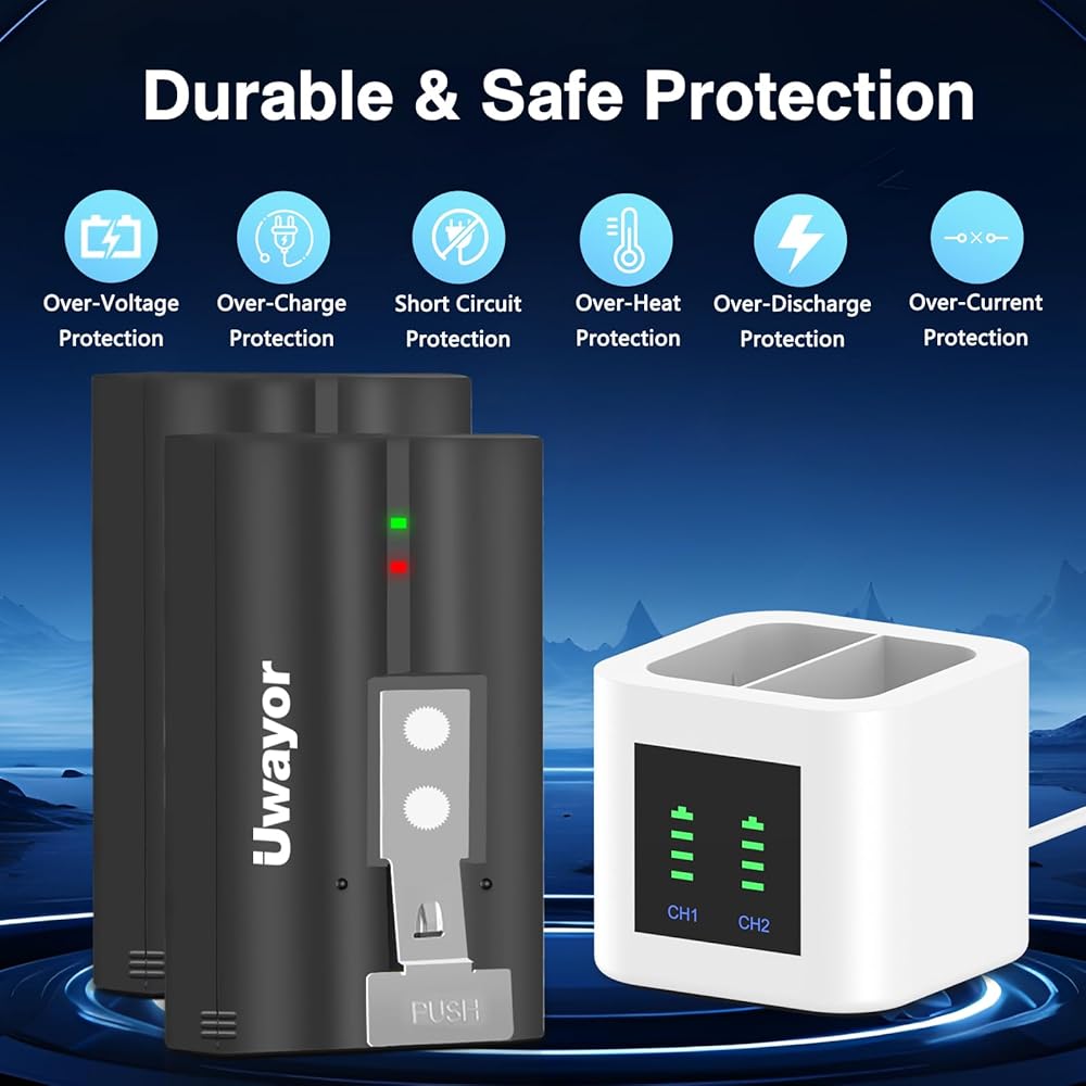 【Safe and Reliable】CE/FCC/RoHS safety certification, meets OEM standards. Built-in multiple circuit protection to prevent battery from over-charging, short-circuit, high-temperature, and surge protection. Ensure ultimate safety for you and your device