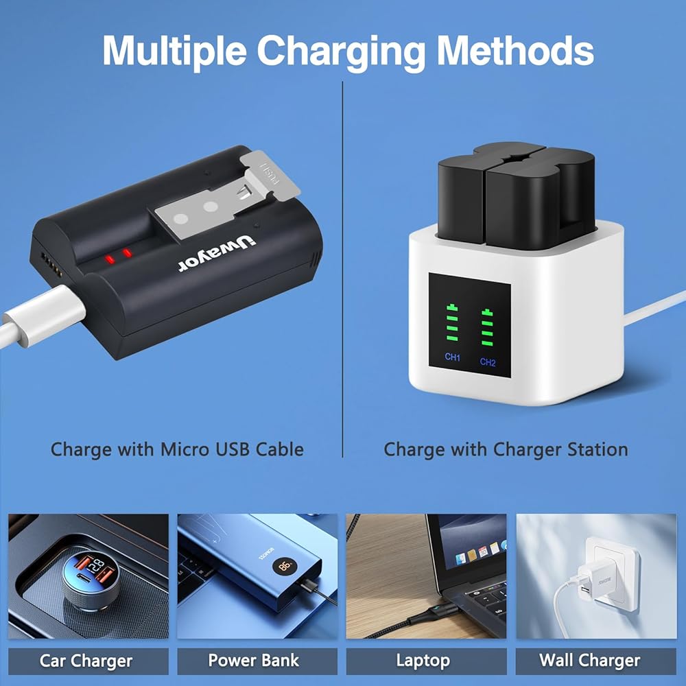 【Versatile Charging Options】The ring doorbell battery with Micro-USB charging port allows you to charge it directly via USB cable to any 5V USB charger, such as PC, car charger, or power bank. Our ring camera battery features user-friendly LED indicators that make you easy to check the charging status. When red and green lights are on, the battery is starting charging. When the 2 lights both green, the battery is fully charged