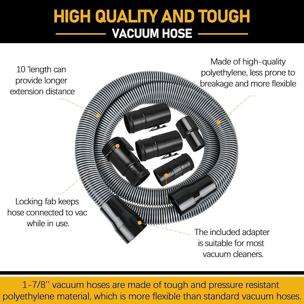 - CMXZVBE38804 1-7/8" x 10-Ft Shop Vacuum Hose Kit, Industrial Wet Dry Vac Locking Vacuum Hose, Fits Most 1-7/8 in Wet/Dry Vacuums
