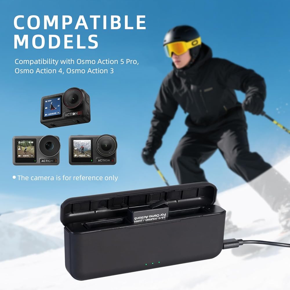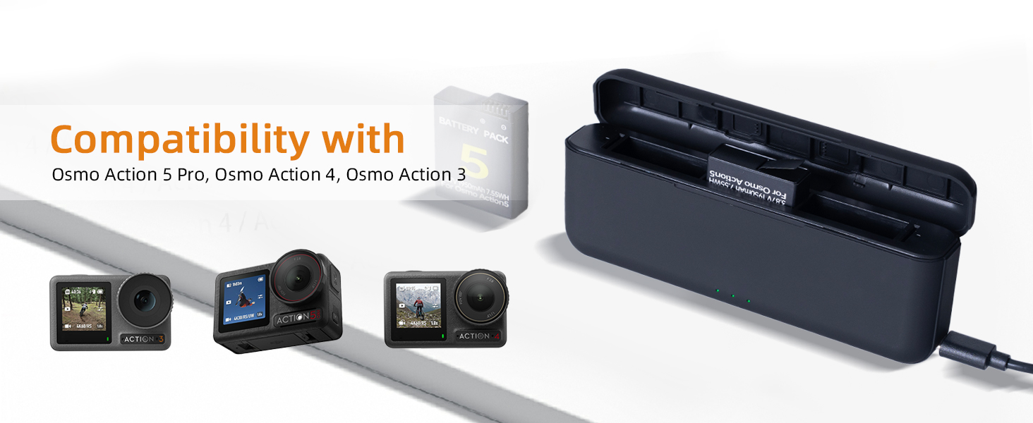 【Full Compatibility】Compatible with Osmo Action 5 Pro, Osmo Action 4, and Osmo Action 3. Combined with the 3-channel USB charging kit, you can conveniently charge batteries simultaneously and always be ready for the perfect shot.