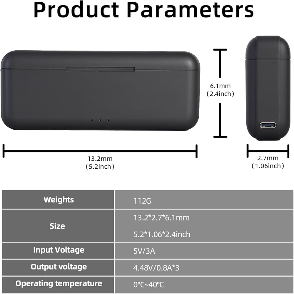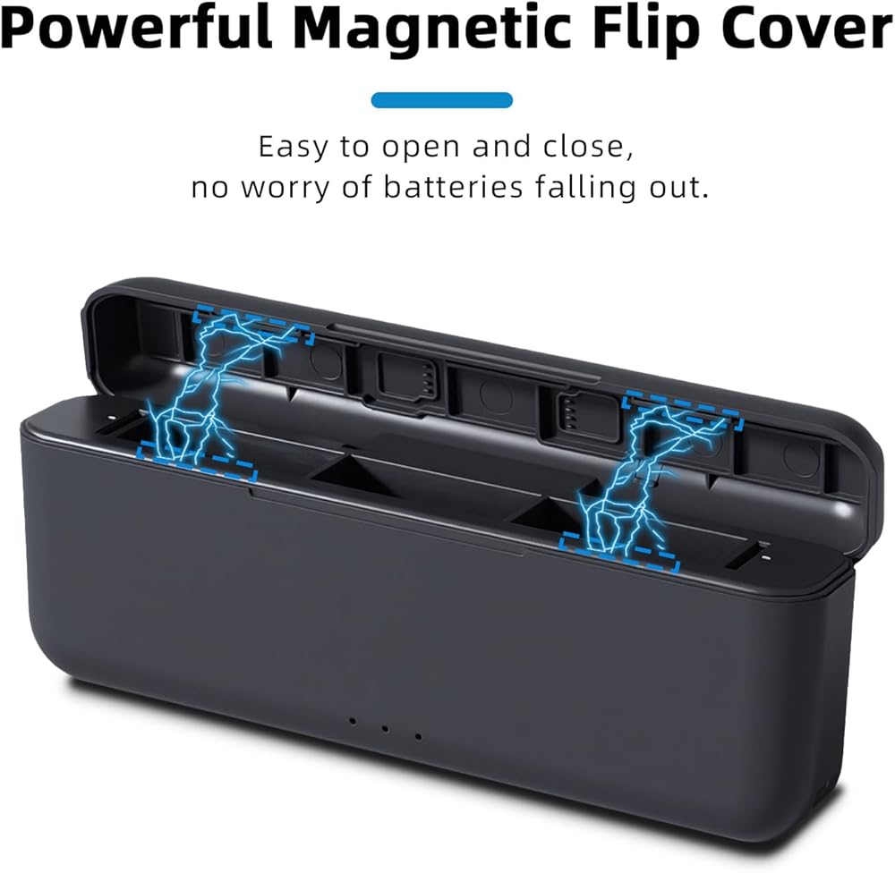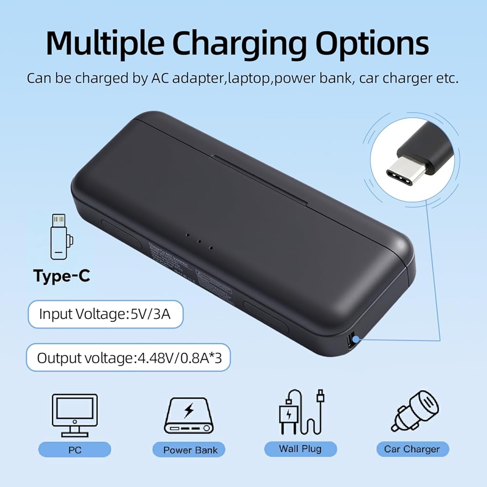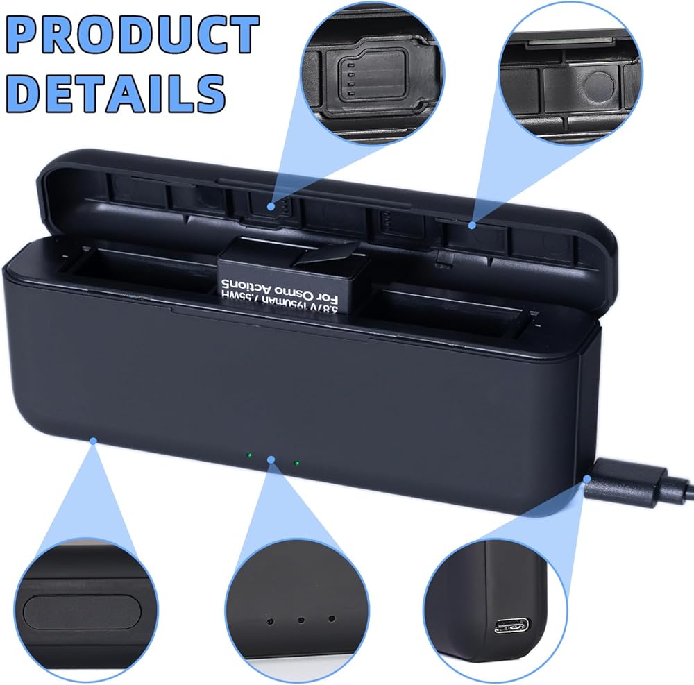 Osmo Action 5 Pro Battery Charger Compatible with DJI Action Osmo Action 5 Pro, Osmo Action 4, Osmo Action 3, USB Fast Charging Case with Type-C Cable, Triple Battery Charger