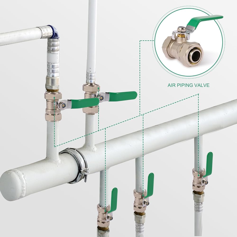 [Emergency Shut-Off & 200PSI Reliability] This air compressor shut off valve allows for immediate air supply cutoff in emergencies, enhancing shop air line kit safety. Rated at 200PSI, it ensures reliable performance in high-pressure compressed air piping systems.