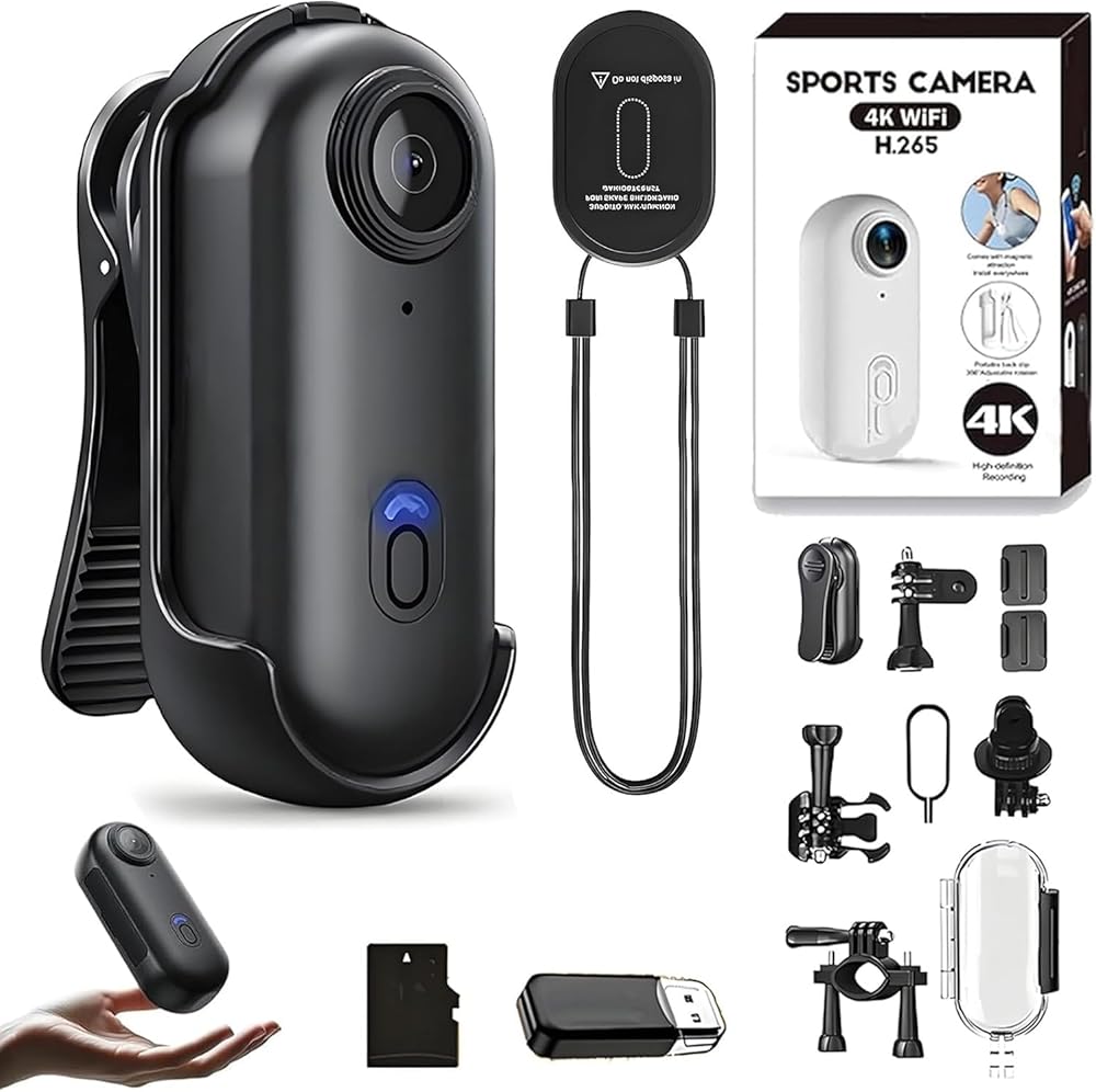 【Compact & Featherlight Design】: Camera Smaller Than a Thumb and Weighing Just 1.25 Oz (35.7g), This Pocket-Sized Powerhouse Disappears on Your Body or Gear. 4k Mini Handsfree Minimalist Profile Ensures Seamless Portability for Adventures, Travel, Or Daily Life.