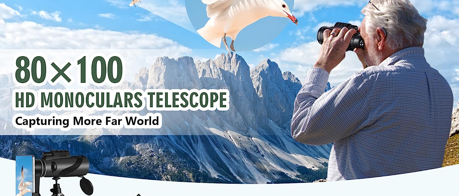 80x100 Monocular-Telescope High Powered for Smartphone Monoculars for Adults High Definition Monocular Telescope for Stargazing Hunting Wildlife Bird Watching Travel Camping Hiking