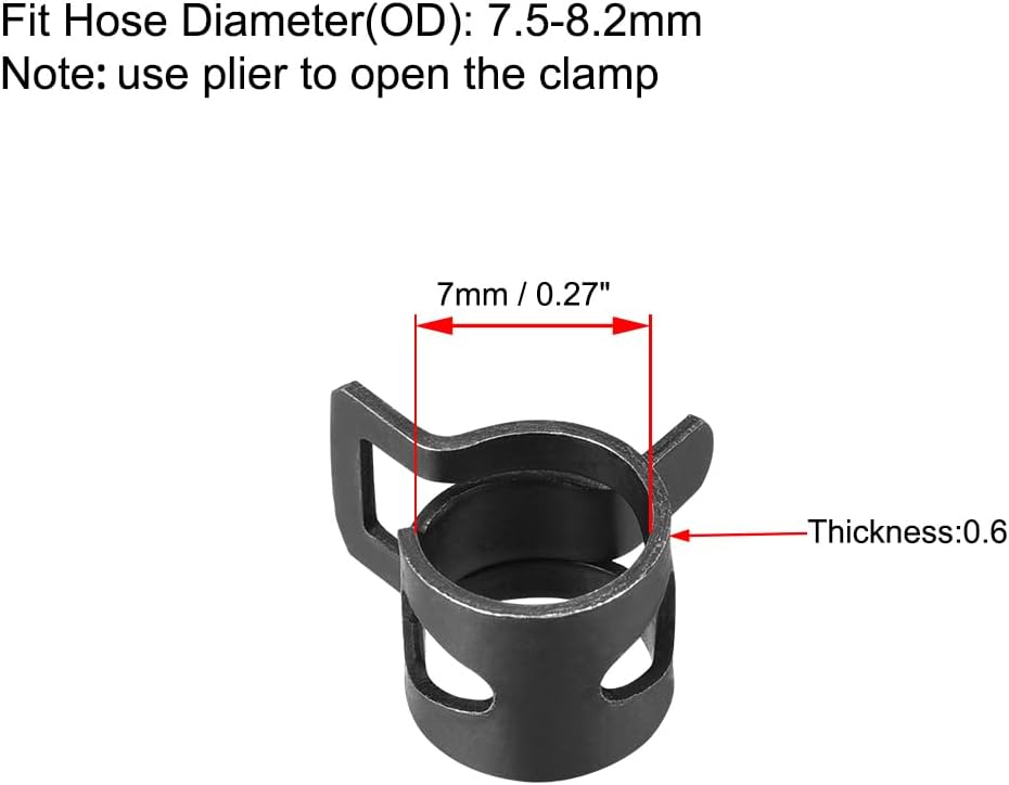 [Feature]: These spring hose clamps are easy to use, just open the clamp with a plier and lower it onto the tube easily.