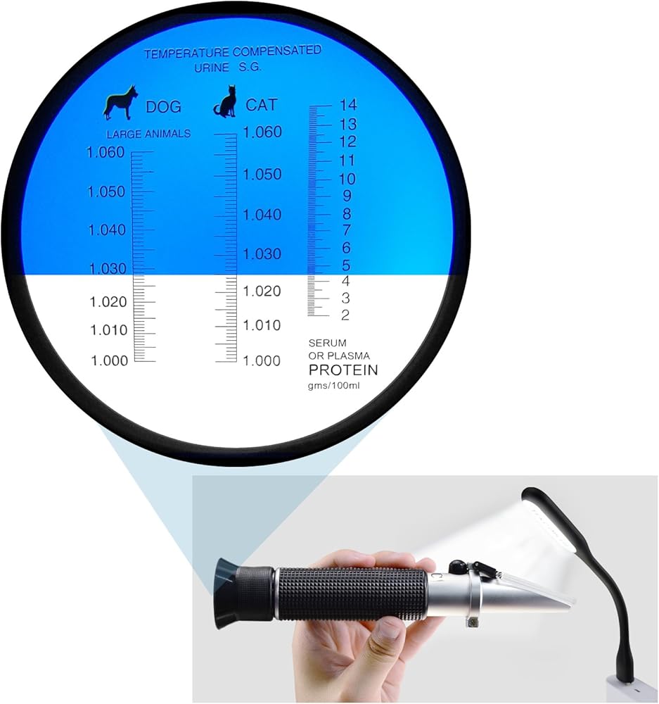 3-in-1 Animal Clinical Refractometer, Veterinary Refractometer, Scale Clinical Refractometer for Cat and Dog Urine Specific Gravity and Serum Protein Health Index with ATC
