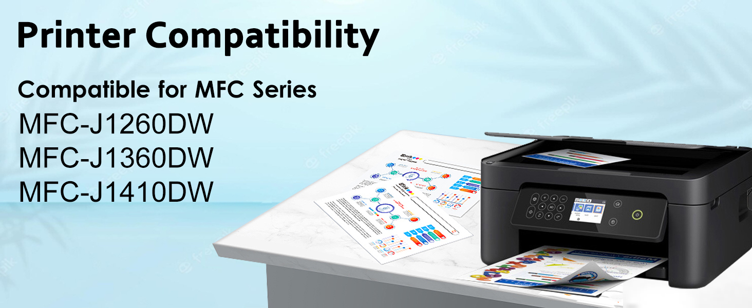 توافق الطابعة: خرطوشة الحبر LC501XL متوافقة مع طابعة Brother MFC-J1260DW MFC-J1360DW MFC-J1410DW الملونة النافثة للحبر الكل في واحد