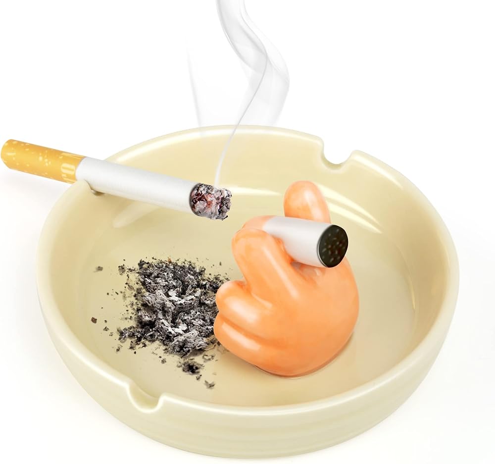 Grovind Ashtray, Cute Finger Ceramic Ashtrays for Cigarettes, Indoor Outdoor Ash Tray Tabletop Cool Ashtrays Decor for Home Office Gifts for Men Women Father