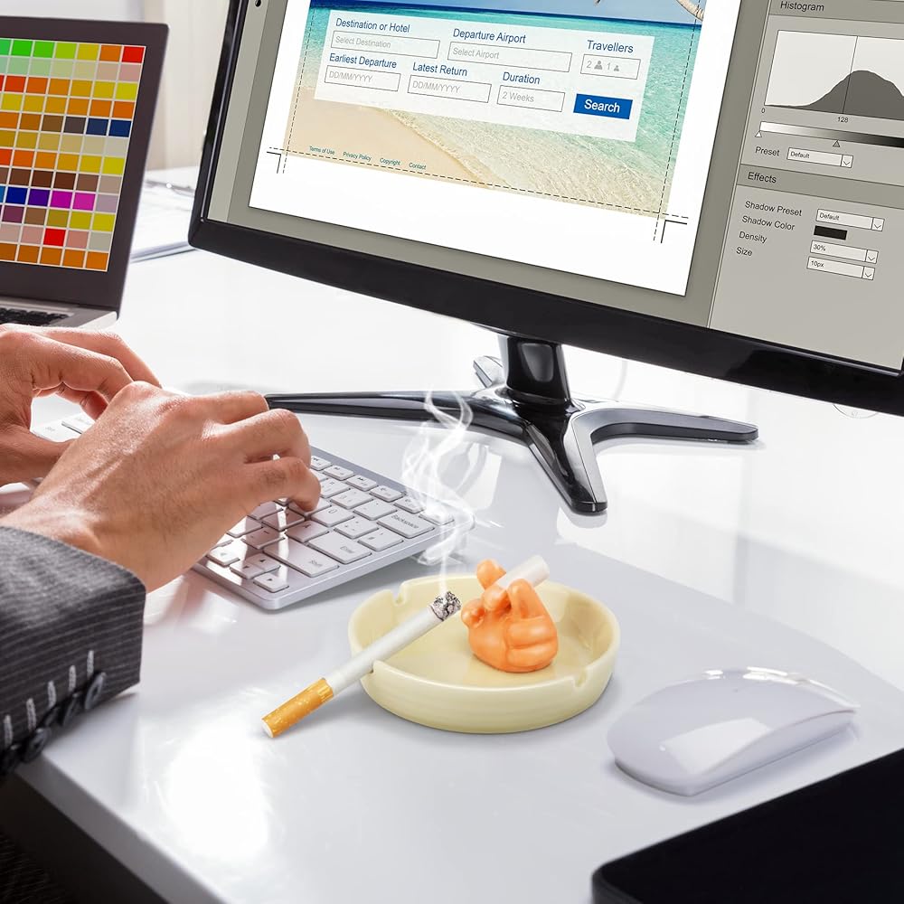 ✌【Unique Design】 This is a cute ashtray designed by a professional designer, which imitates the posture of human fingers smoking, creating a unique, interesting and cool ashtrays, vivid and eye-catching, which can bring exquisite decoration to your desktop
