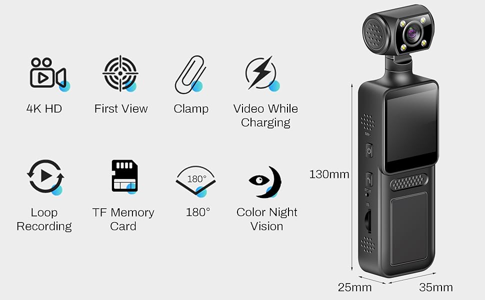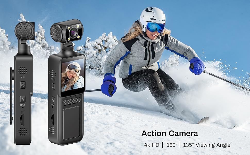 Ultra Wide 135° Viewing Angle: Record clear, noiseless 4K ultra HD images with a 135° wide angle view. The 1.3 inch HD screen allows easy adjustment of recording angles for enhanced viewing.