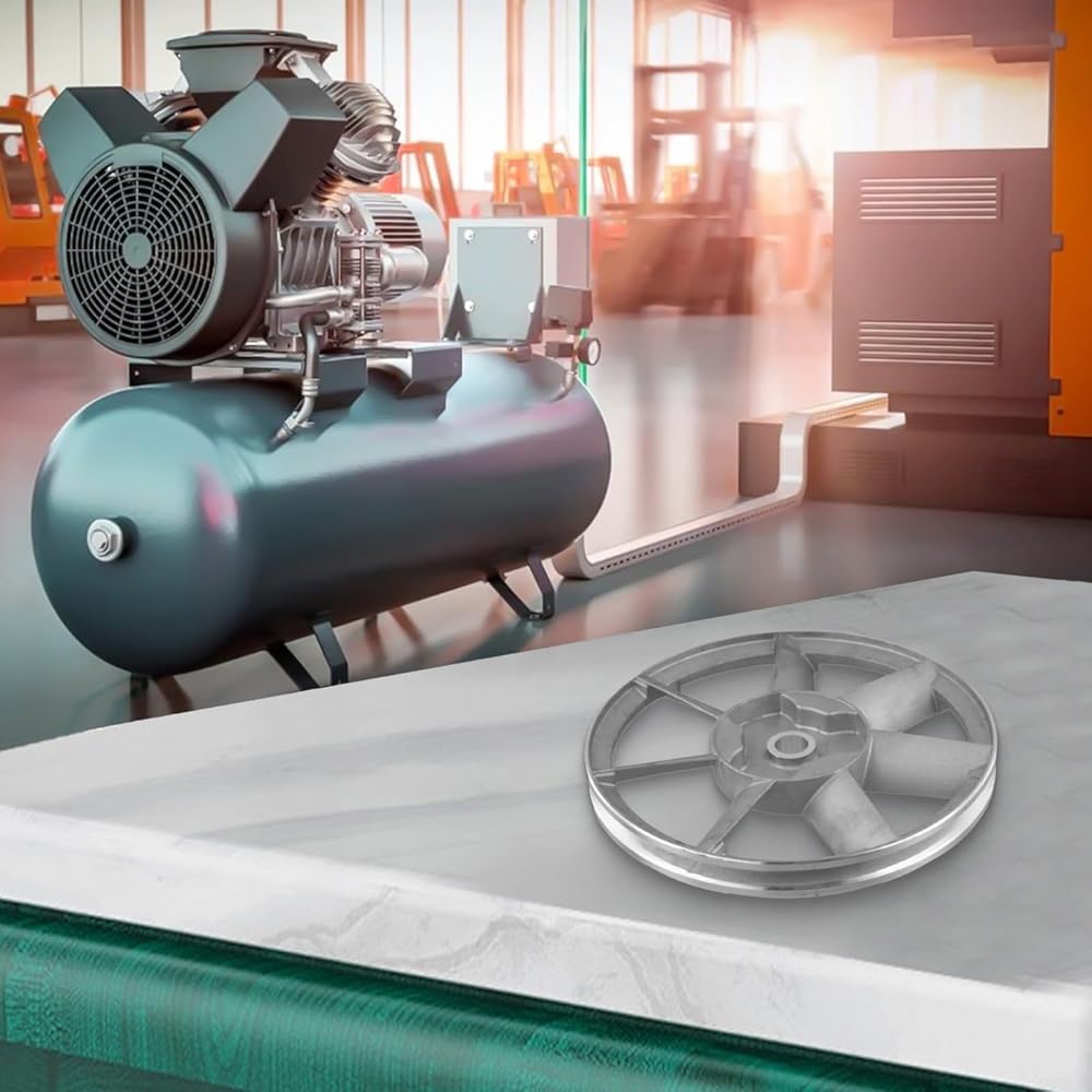 【Performance Optimized Design】: The single groove configuration with triangle belt compatibility enhances power transfer efficiency from motor to compressor head. This balanced flywheel design reduces vibration during operation, contributing to quieter running, smoother compression cycles, and potentially lower energy consumption in your air compressor system.
