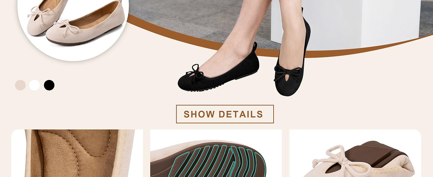 Material: The upper of black flats for women are made of faux suede, which is comfortable and breathable. The memory foam insole cushions you as you walk. The rubber sole provides excellent flexibility and traction