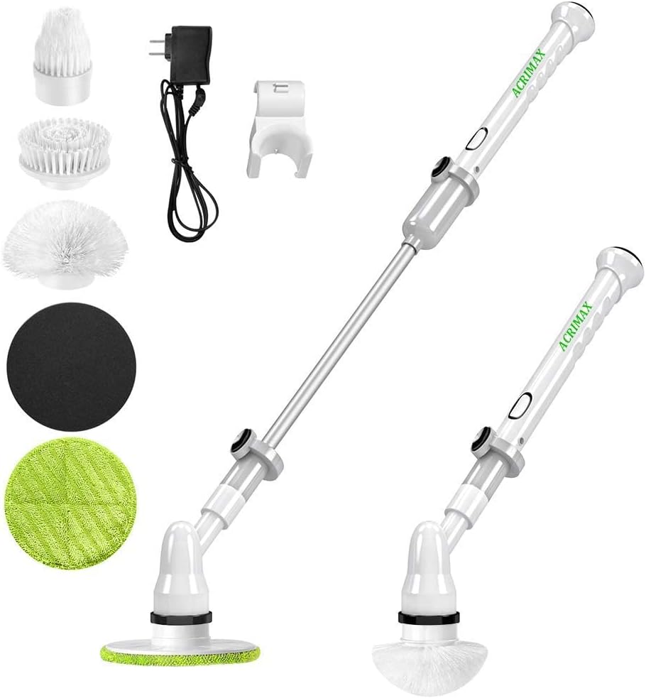 Powerful Spin for Deep Cleaning - The Acrimax electric spin scrubber has a built-in rotating brush head with a powerful motor that can rotate up to 450RPM. When used with detergents, it can effectively remove stubborn stains, making your housework effortless.