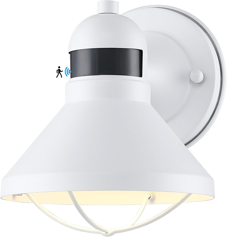 LONEDRUID Dusk to Dawn Motion Sensor LED Outdoor Barn Light Fixtures White Exterior Wall Lantern Waterproof Outside Sconce Lighting Rustic Farmhouse Wall Mount Lamp for House Porch Patio Garage