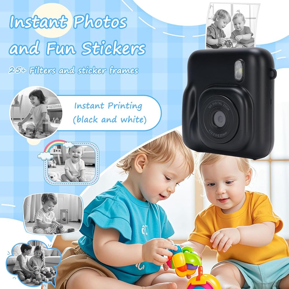 [Instant Printing Magic] Watch your child's face light up as their photos print instantly in black and white within just 1 second. this unique instant print feature makes the camera perfect for travel holidays and everyday adventures allowing kids to immediately share their creative work or start a photo journal of their special moments.