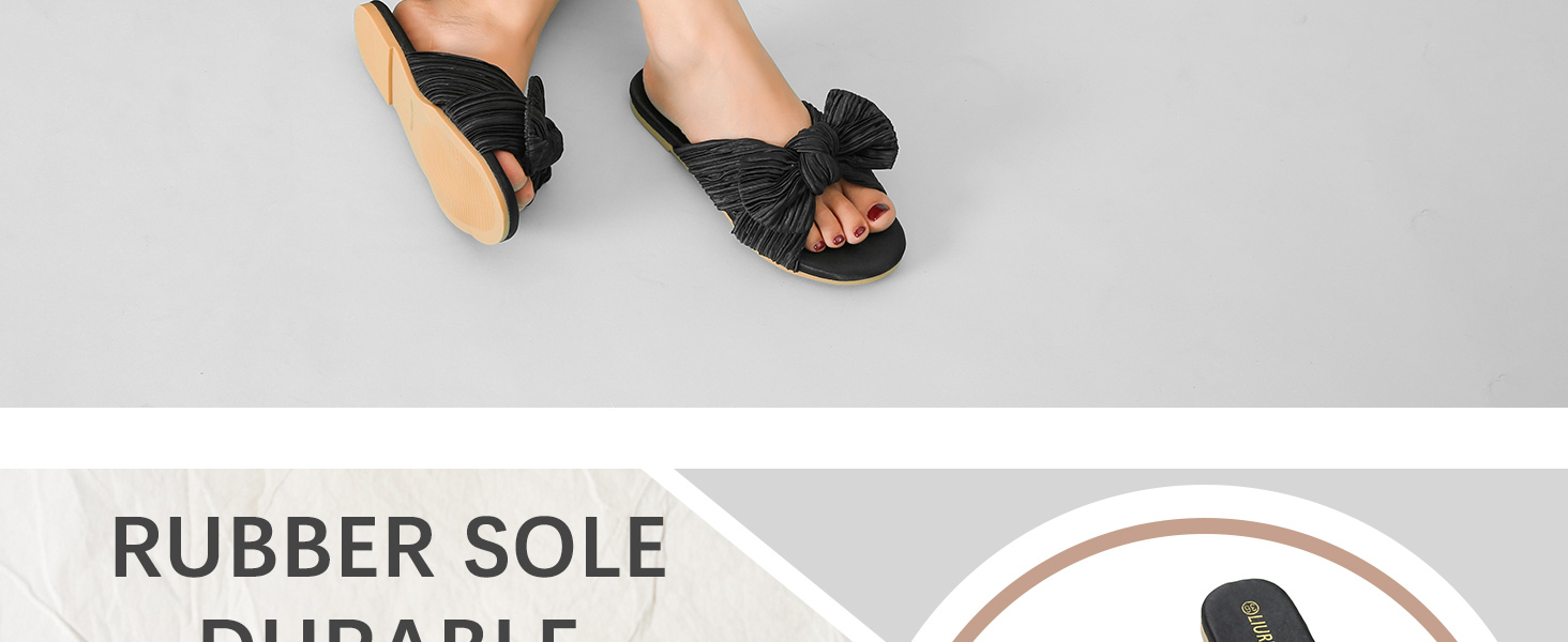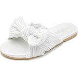 Step into Elegance and Comfort Elevate your summer wardrobe with our Women's Pleated Satin Bow Slide Flats Sandals. Designed for the modern woman who refuses to sacrifice style for comfort, these slide sandals women offer a sophisticated silhouette that transitions seamlessly from a sunny beach sandals look to a polished dressy sandals women ensemble. Whether you're looking for the perfect bridal slides for a wedding reception or cute sandals for women for a weekend brunch, these flats are your ultimate style companion. Key Features: Chic & Timeless Design: These cute sandals feature a premium pleated satin upper adorned with an oversized, hand-knotted bow. The elegant texture makes them the ideal women flat sandals for those who want to stand out with a touch of feminine charm. All-Day Walking Comfort: Unlike ordinary flat sandals for women, our pair is engineered with a high-density latex padded insole and a supportive memory foam midsole. This ensures these womens slide sandals provide "cloud-like" cushioning, making them perfect for all-day wear and long urban walks. Versatile Occasion Ready: These dressy sandals women are a summer essential. Pair them with a flowy sundress for a beach day, or match them with tailored trousers for a garden party or a romantic dinner. They are the most versatile slides women can own for the upcoming season. Effortless Slip-On Style: Designed for the fast-paced lifestyle, our slide sandals women offer a quick on-and-off experience. The durable, anti-slip rubber outsole provides stability on various surfaces, ensuring these womens slide sandals are as functional as they are fashionable. The Perfect Gift: Looking for cute sandals for a loved one? These white flat sandals are a popular choice for brides, bridesmaids, or anyone who loves the "Effortless Chic" aesthetic.