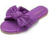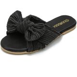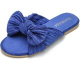Chic Pleated Bow Design: Elevate your summer look with our cute sandals, featuring a luxurious pleated satin bow tie. This elegant knotted detail adds a sophisticated, dressy touch to a classic silhouette, making your feet look dainty and stylish whether you are at home or on holiday, these slides perfect for weddings, bridal parties, or elevating your daily summer style.