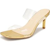 Chic Design & Easy Wear: High heels for summer feature a modern square toe and eye-catching transparent double straps for a stylish look. The slip-on design makes them easy to put on and take off, providing convenience for you without compromising elegance.