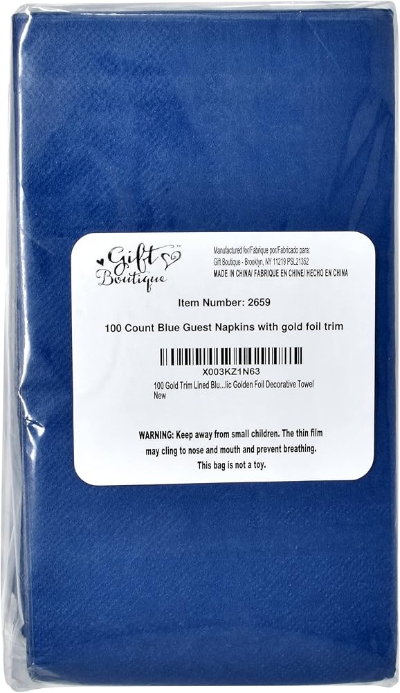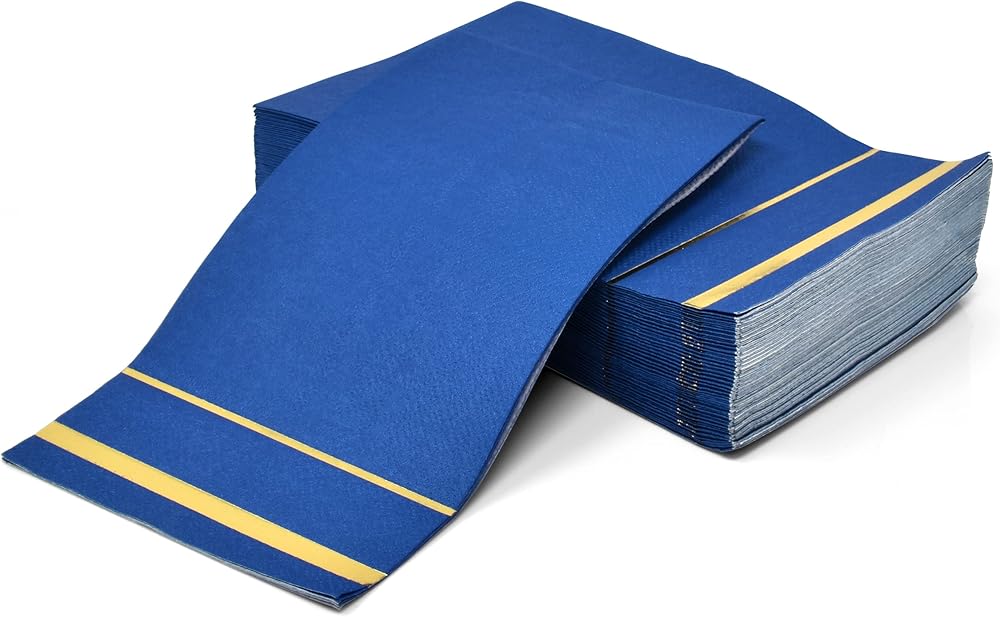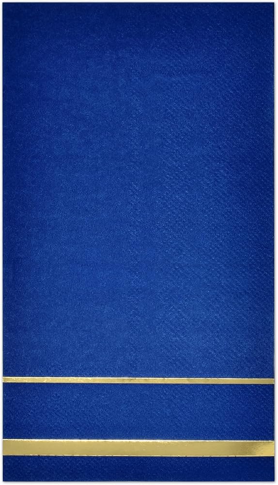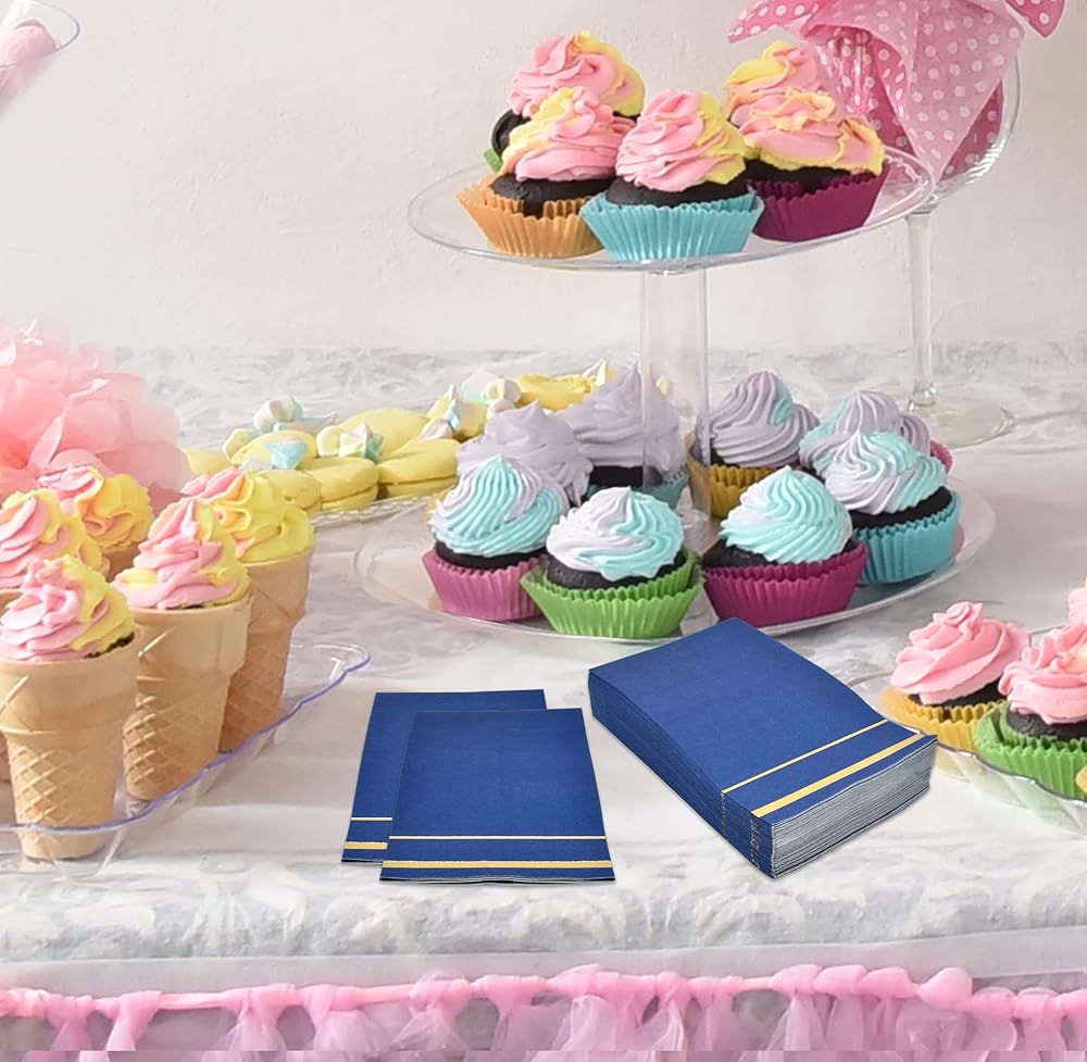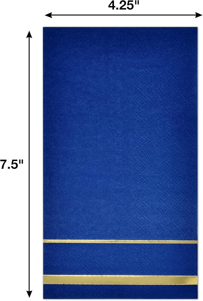 Gift Boutique 100 Gold Trim Lined Blue Guest Napkins Disposable Paper Pack Elegant Dinner Hand Napkin for Bathroom Wedding Holiday Graduation Bridal Baby Shower Metallic Golden Foil Decorative Towel