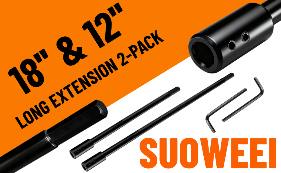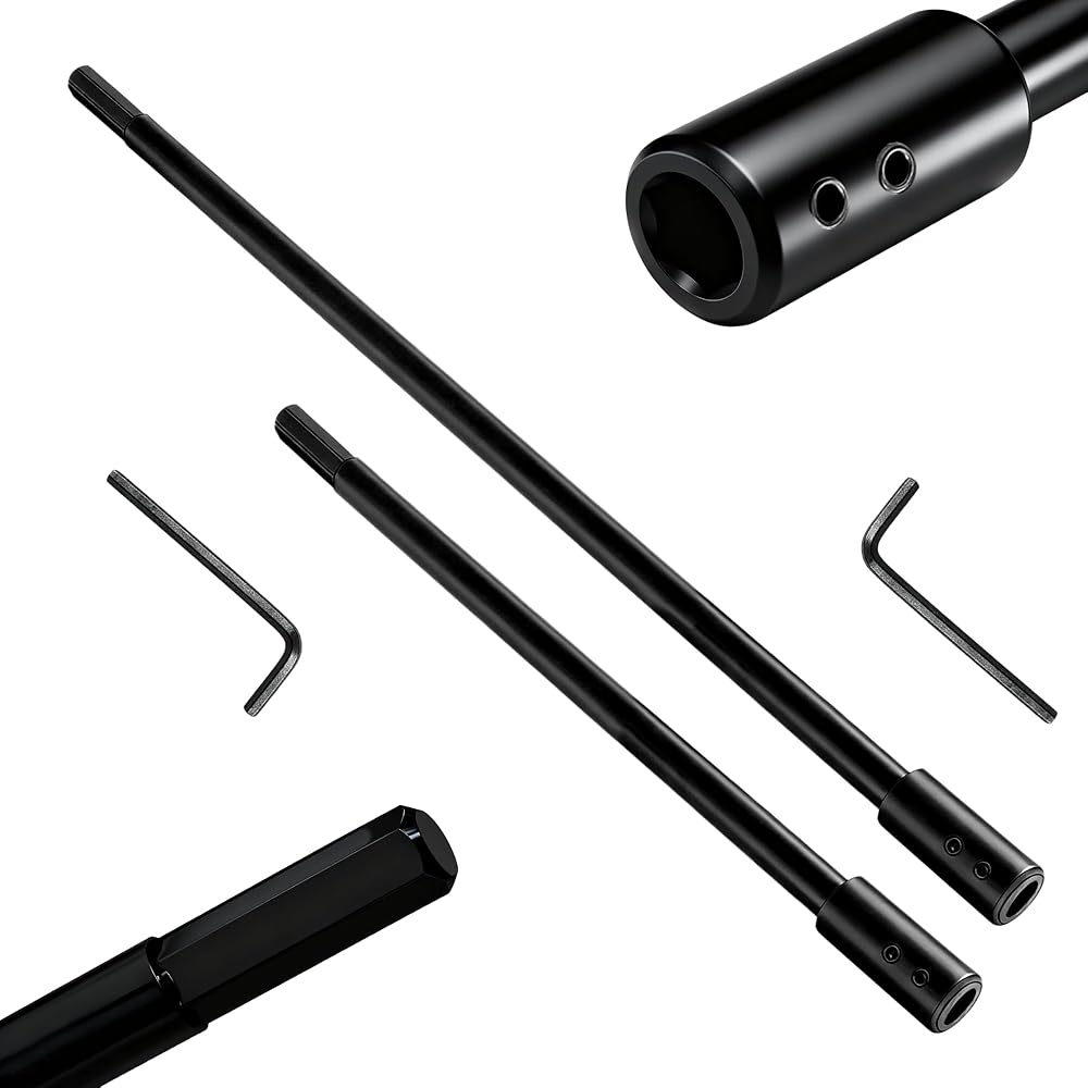 【Convenient & Efficient Application】Drill bit extender for simple, no-complication operation: included hex key for set screw loosening, insert drill rod (not included) (align set screw with drill rod's flat surface), then screw tightening. 12” & 18” lengths for free switching to fit different drilling depths.Time-saving, suited for mechanics, construction workers, homeowners, DIYers, novices and skilled users.