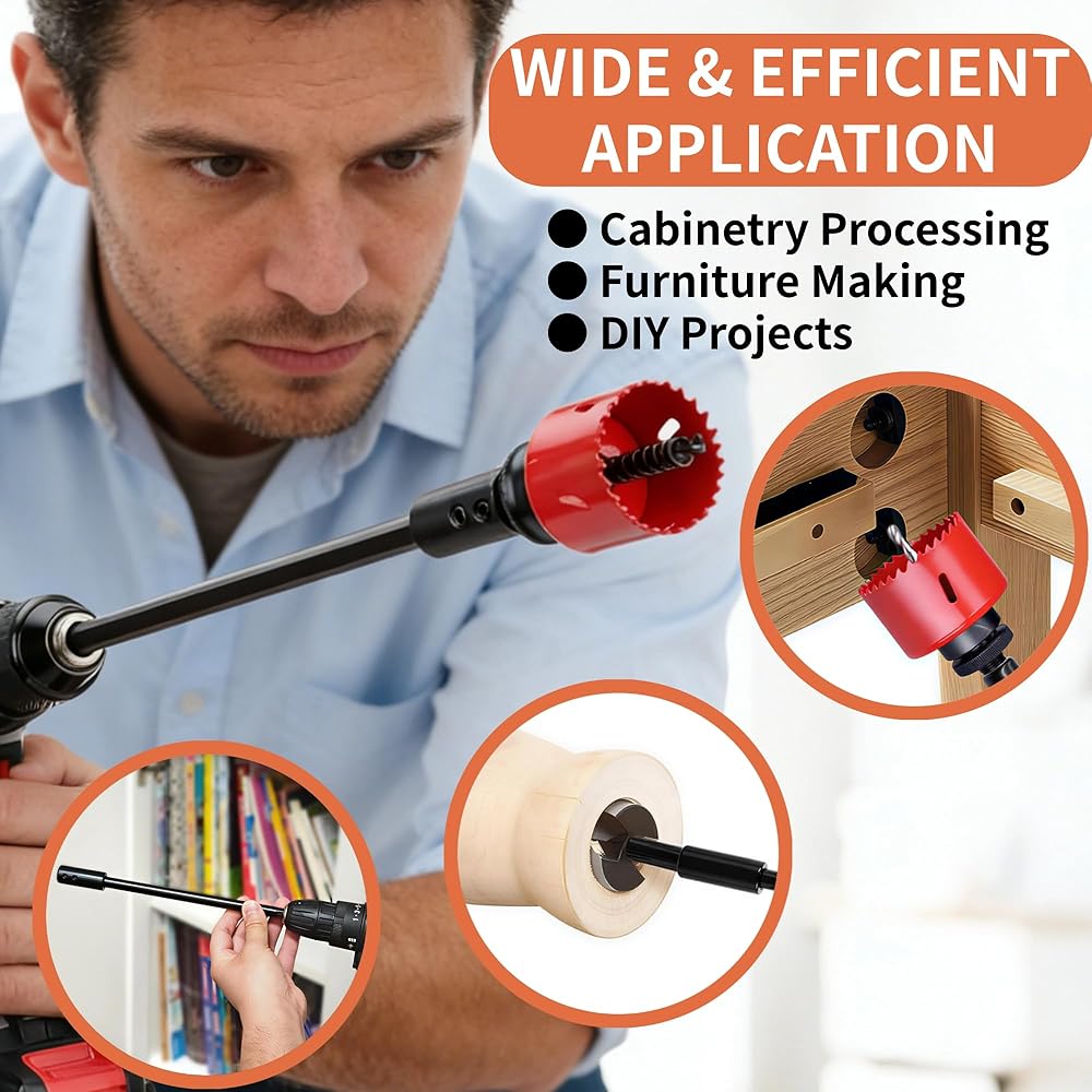 【12" &18" bit 2-Packs Combo】12" & 18" forstner bit extension 2-pack, engineered to extend drill working range. Ideal for hard-to-reach spots, tight spaces, corners and awkward angles—suited for cabinetry, furniture making and DIY projects. Enhances working area, flexibility and operational efficiency.