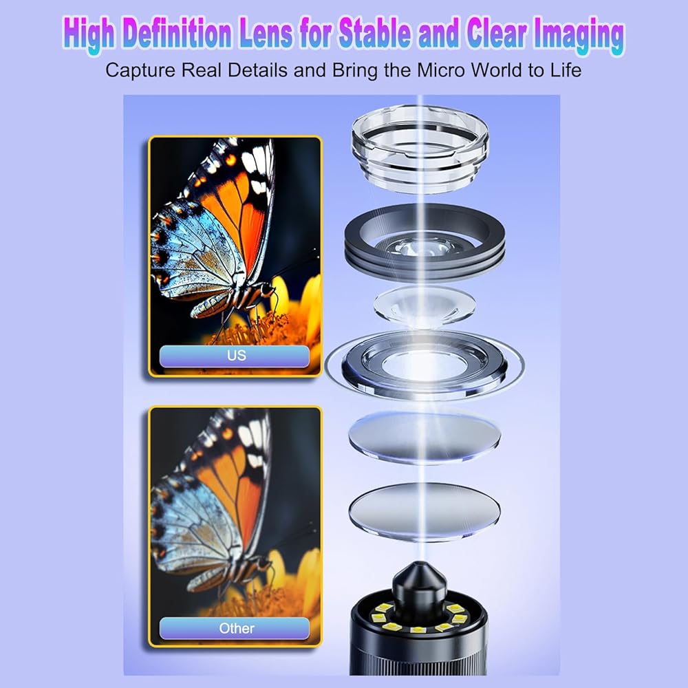 【Compatibility with PC for Enhanced Viewing】Connect this microscope to your PC via USB for an even larger-screen viewing—no additional software needed! It is compatible with windows macOS, also works with default applications like compatible with " Camera" and compatible with "Booth". Ideal for data sharing, teaching, or collaborative projects in labs, workshops, or classrooms.
