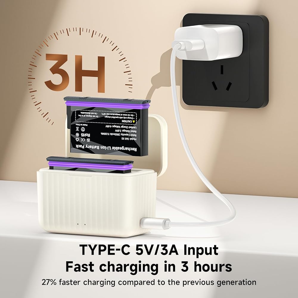 Package List: 2 Pack Battery Replacement for Insta360 X5, Battery Charger with Type-C USB Fast Charging Cable*1, Battery Protective Case*2