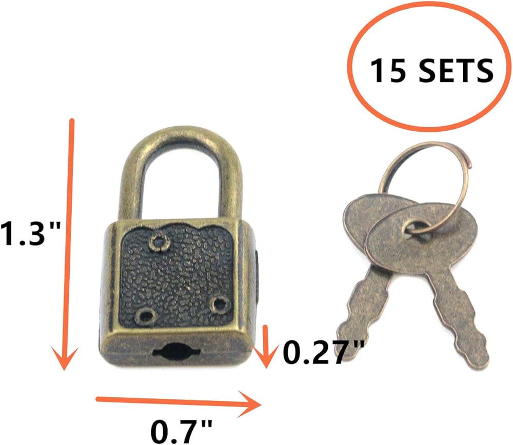 15 Pcs Mini Diary Metal Locks, Mini Padlock with Key for Suitcase, Schoolbag, Backpack, Luggage Lock, Bronze